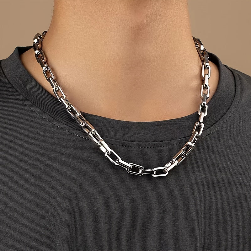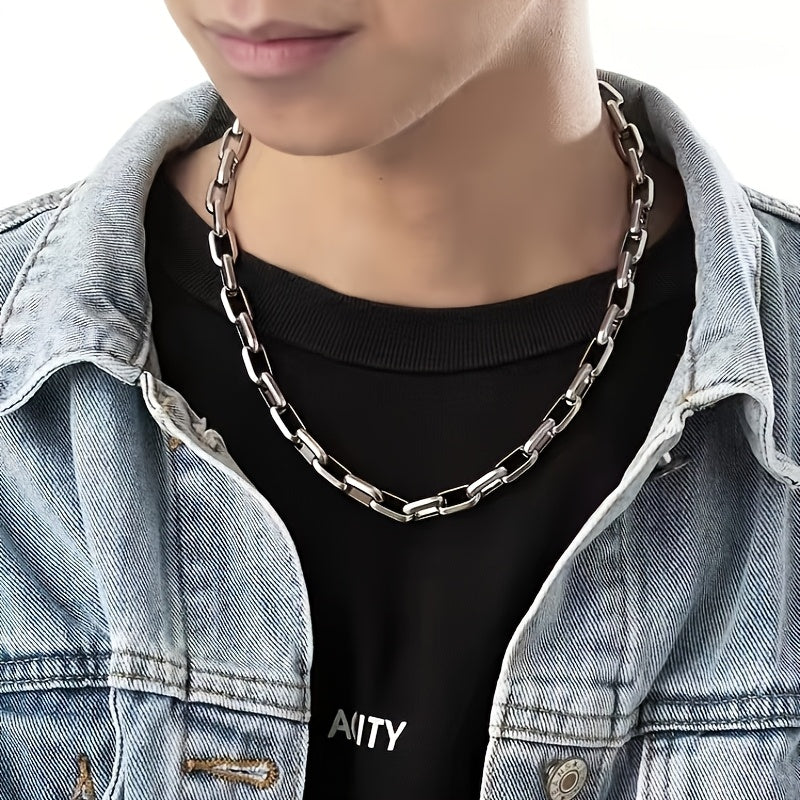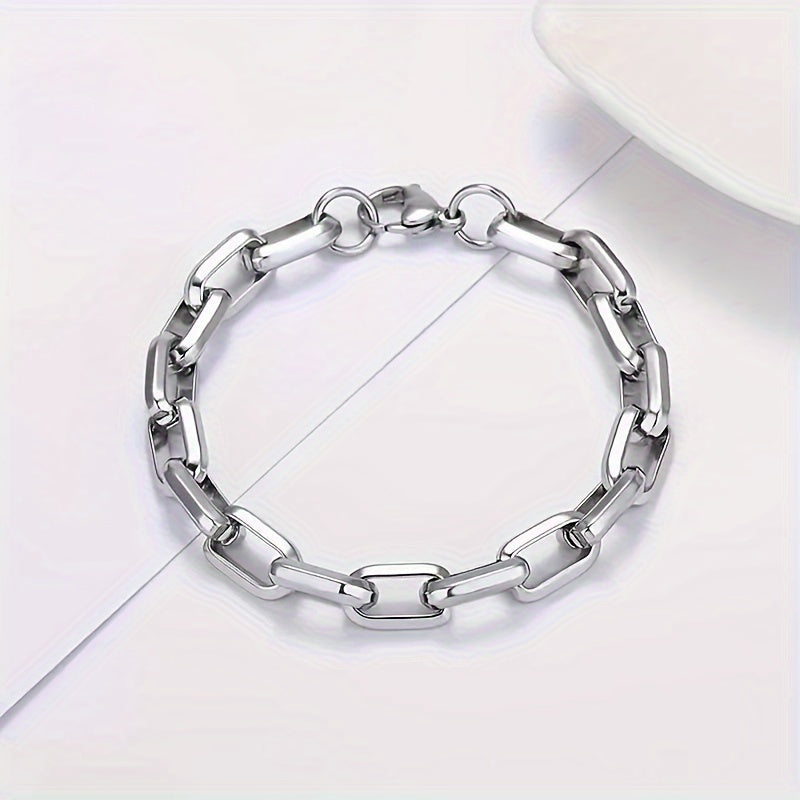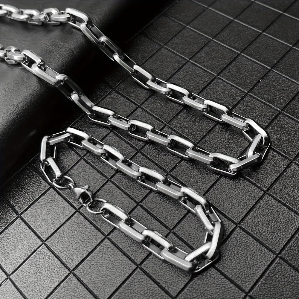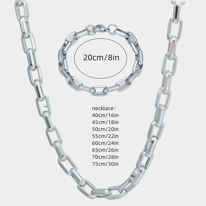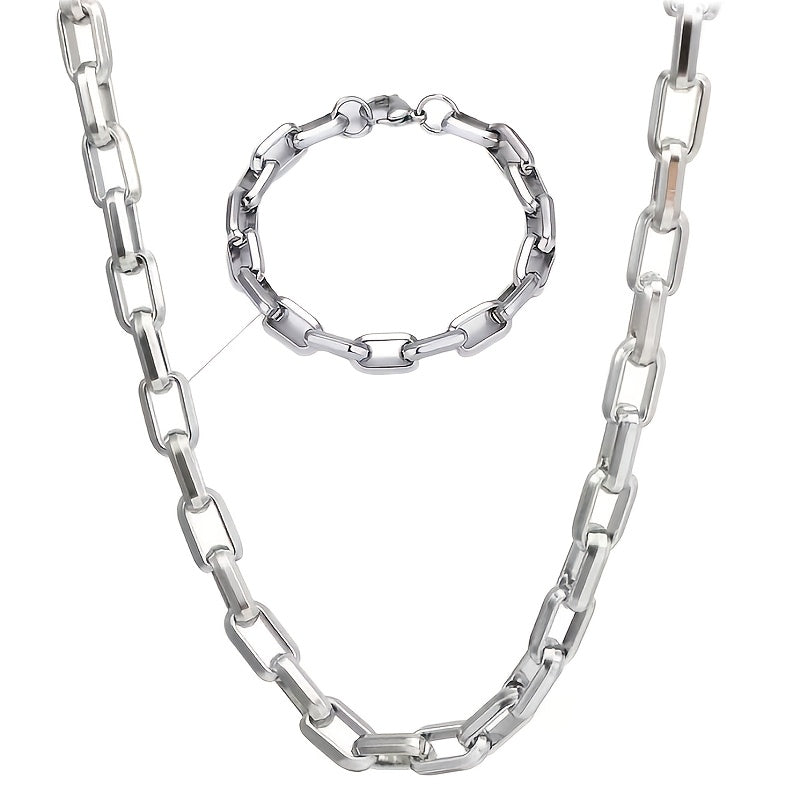 This set includes a classic and handsome stainless steel rectangular chain bracelet and necklace for daily wear or party occasions.