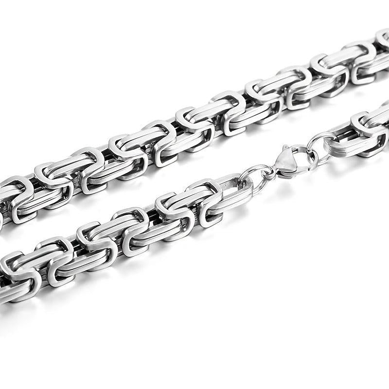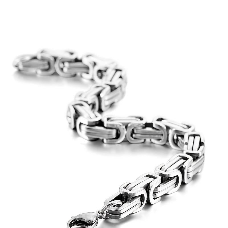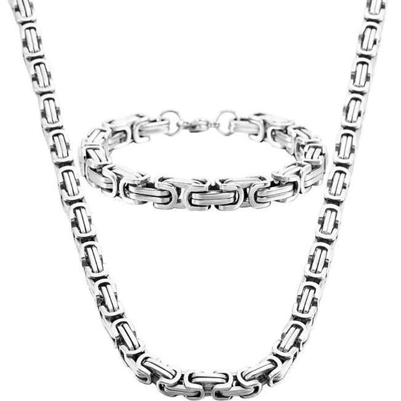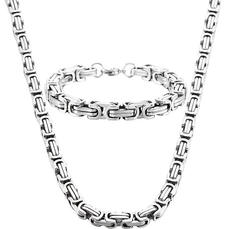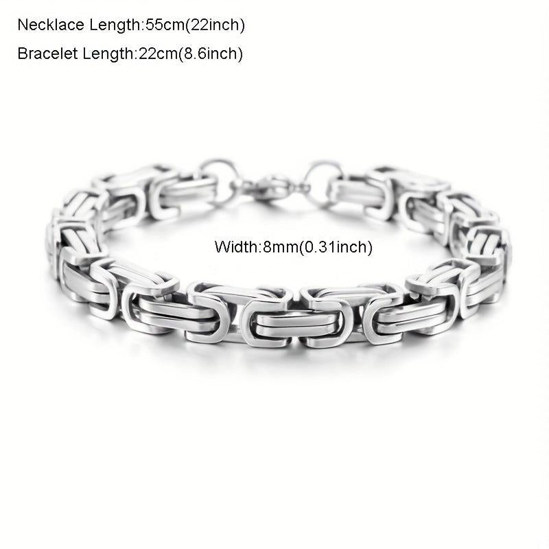 Complete your look with this stylish stainless steel jewelry set that includes a U shaped necklace and an 8mm wide bracelet. Perfect for everyday wear or special occasions.