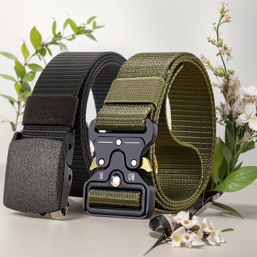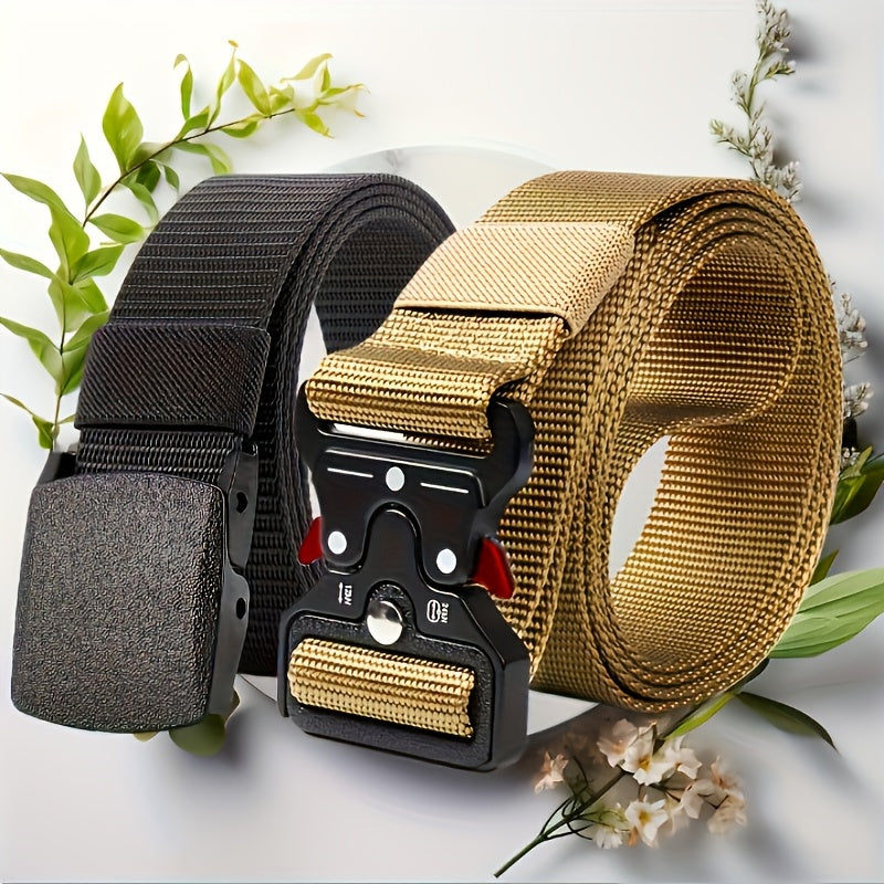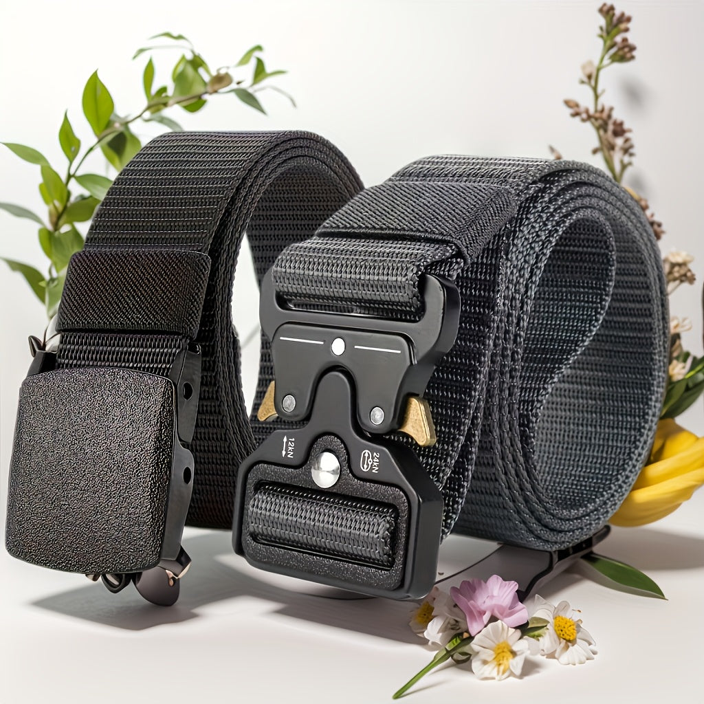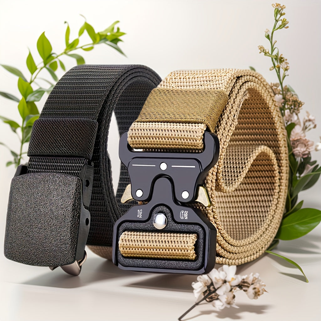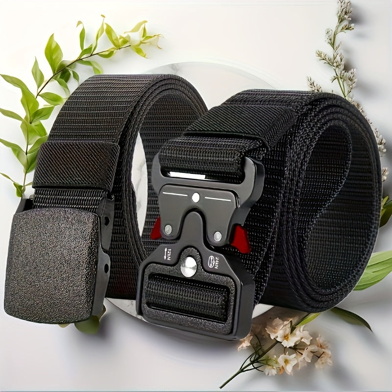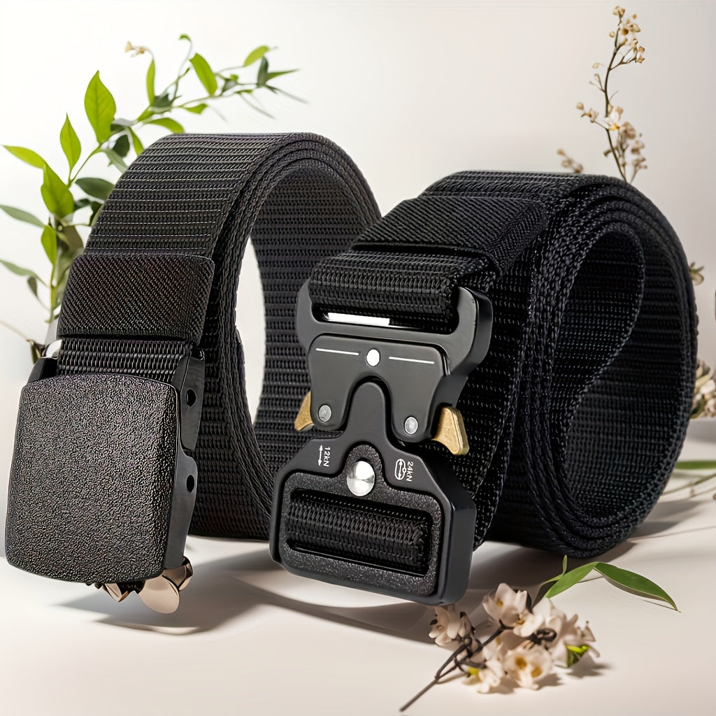 Stay stylish and secure with this set of 2 unisex tactical belts featuring quick release buckles. Made of durable nylon, these belts are perfect for casual wear with jeans or dresses. The automatic closure adds convenience.