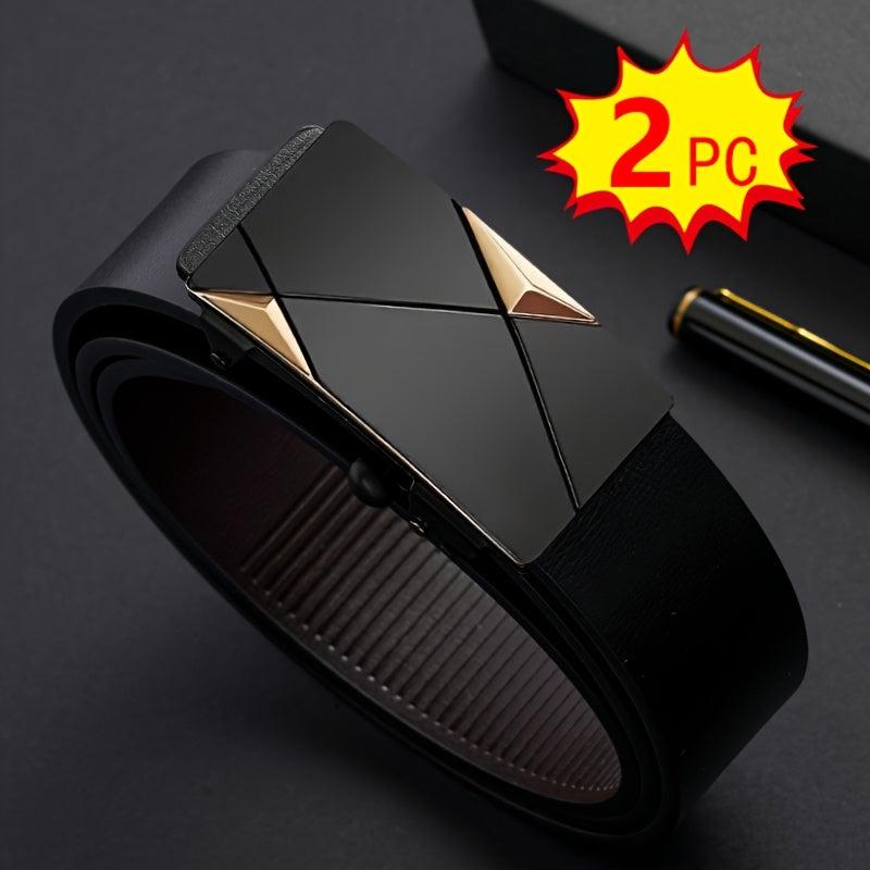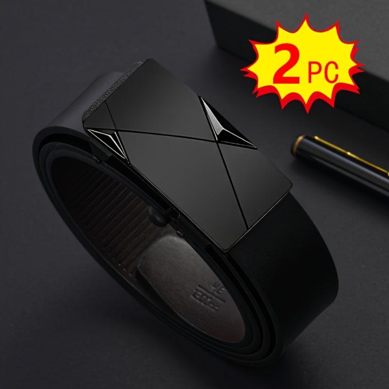 This set includes 2 vintage-style belts with automatic buckles, ideal for casual wear. Made of faux leather panels with a plastic buckle. Not washable.