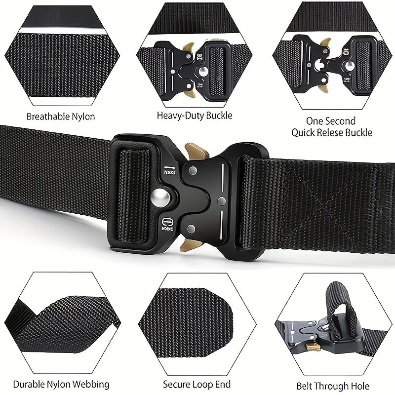 These tactical nylon belts are designed for sports and outdoor activities, featuring a durable alloy buckle and multifunctional marine canvas material.