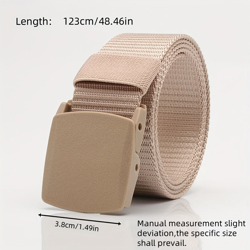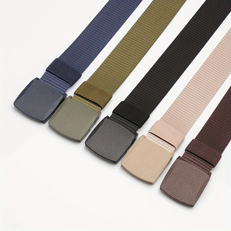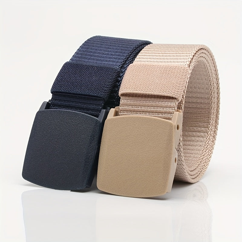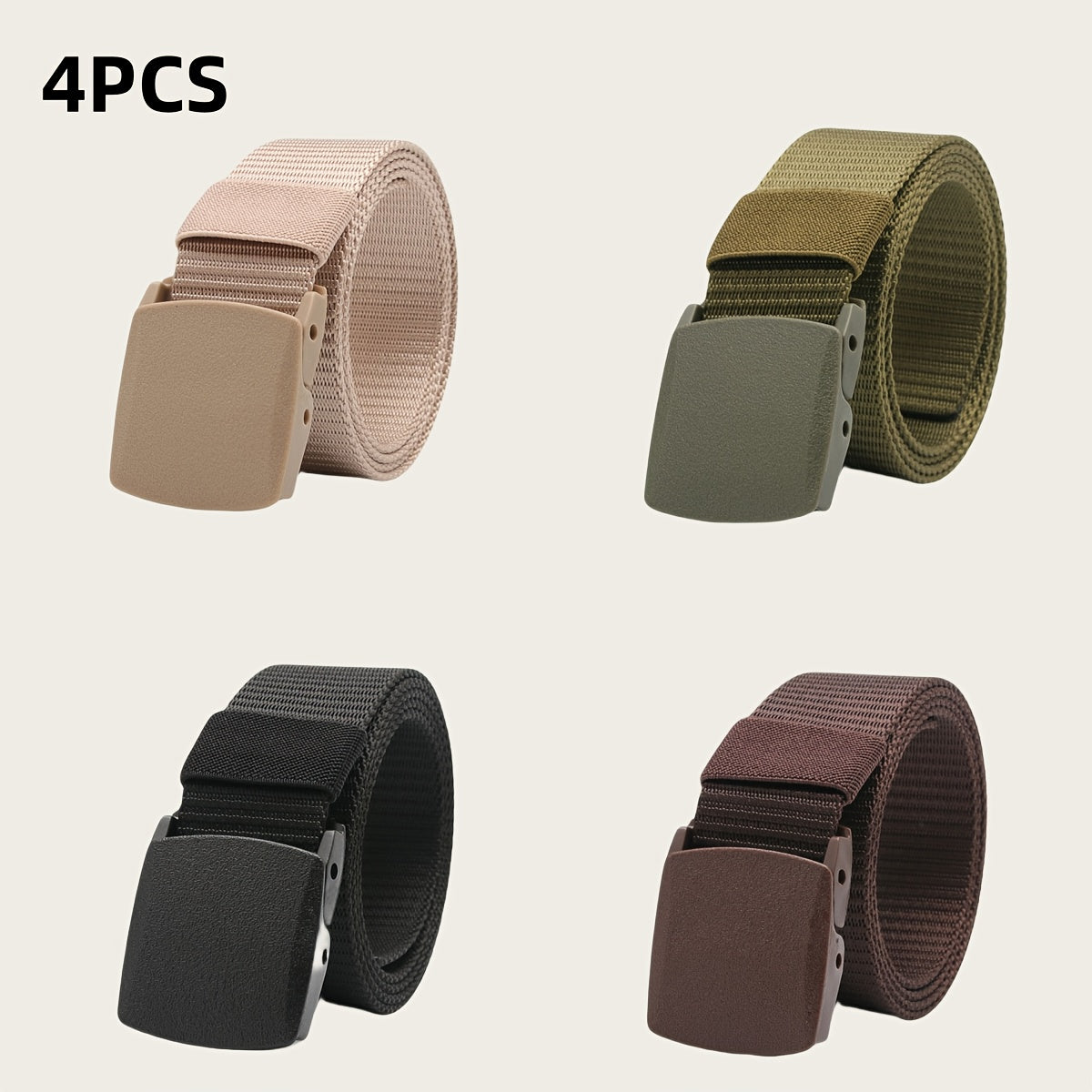 Elevate your outdoor and casual look with these 4 durable nylon belts. Perfect for hiking, camping, and everyday wear, these belts come in navy, dark brown, light beige, and tan.