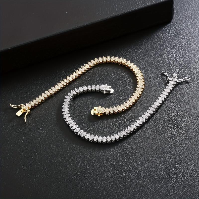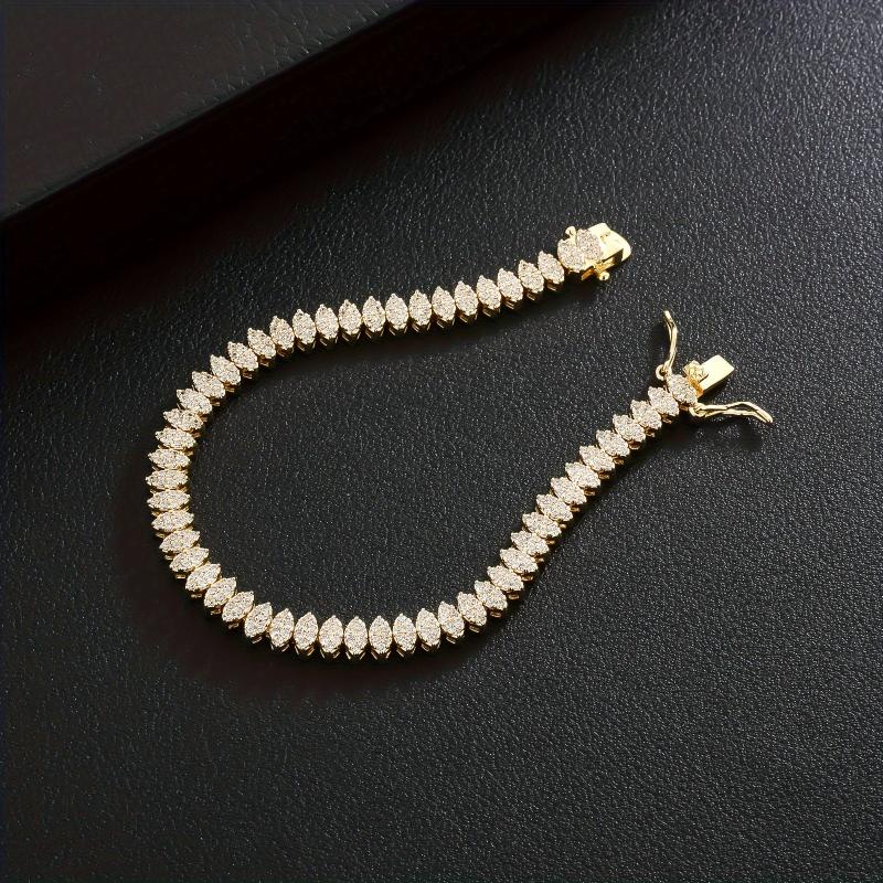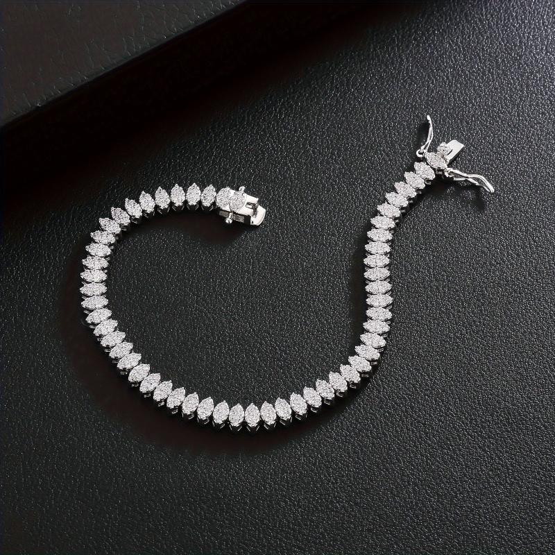 Add a touch of luxury and style to your outfit with this 5mm leaf-shaped zirconia bracelet. Perfect for parties or daily wear, this hip hop bracelet is sure to make a statement.