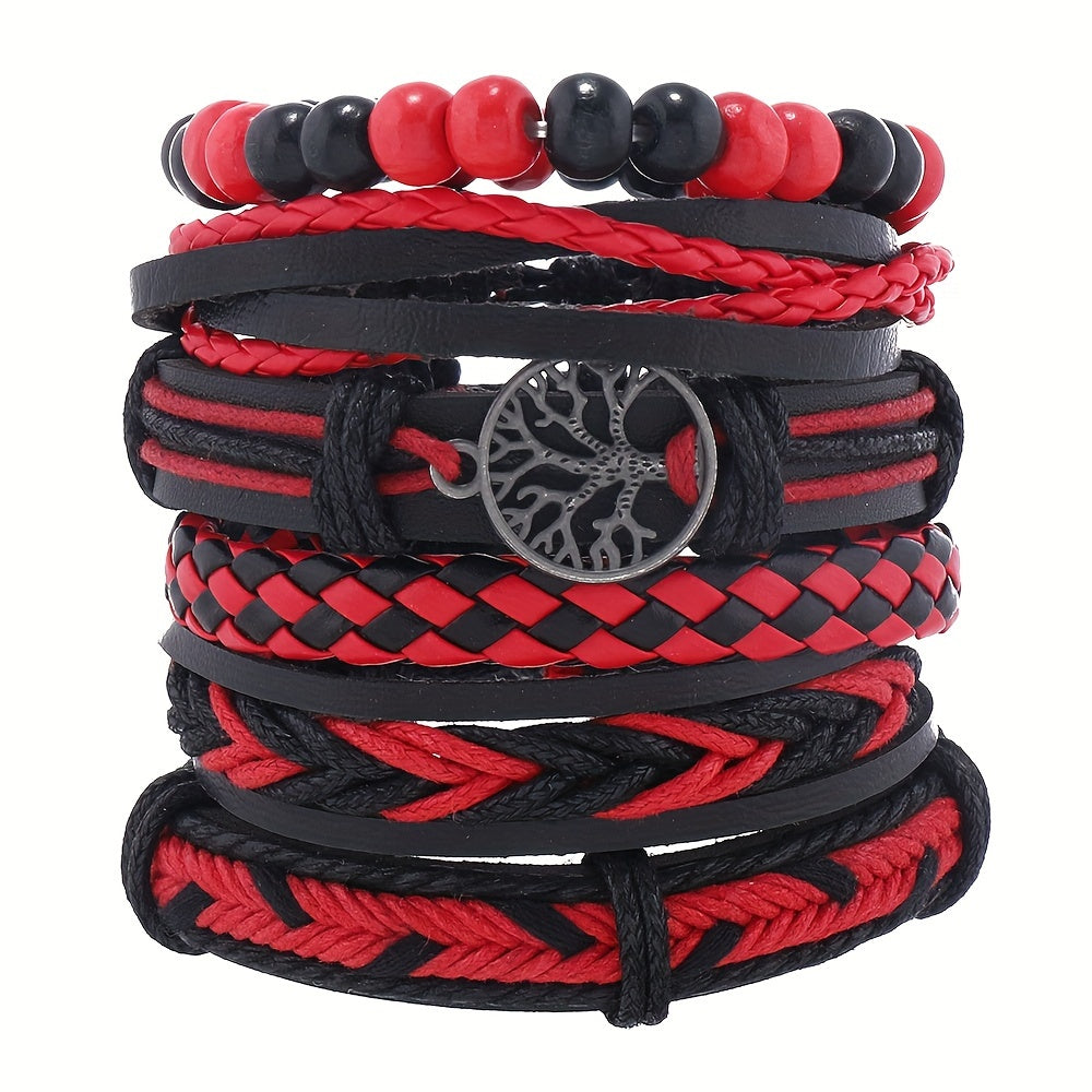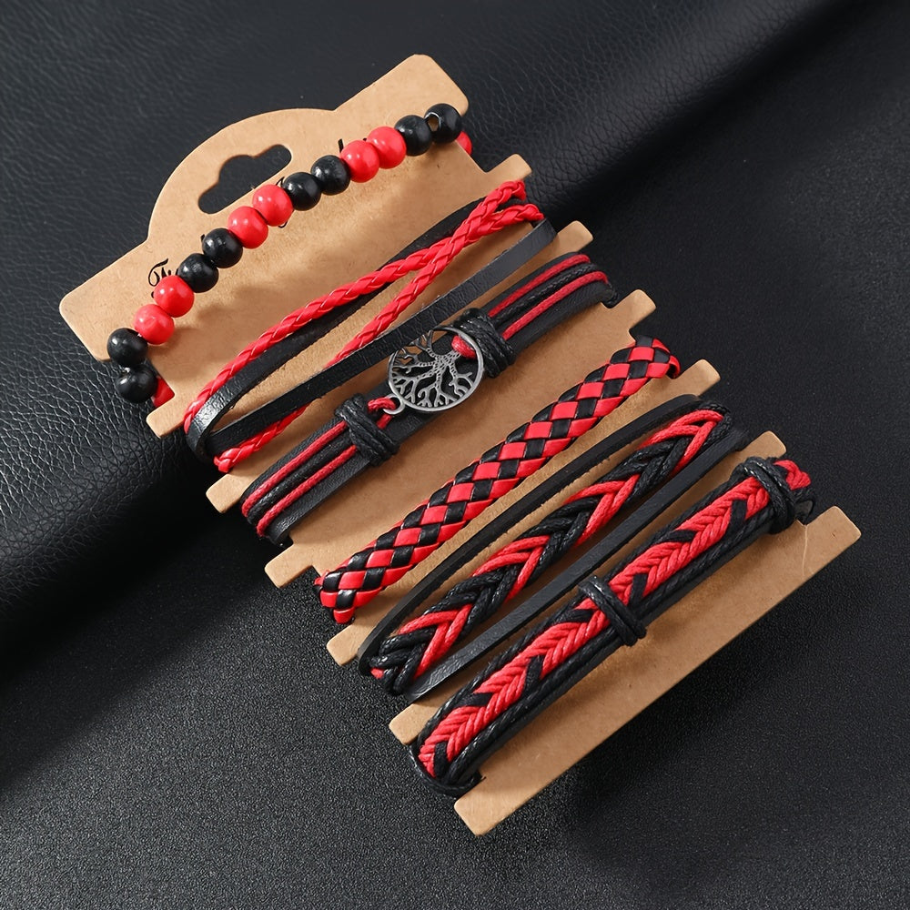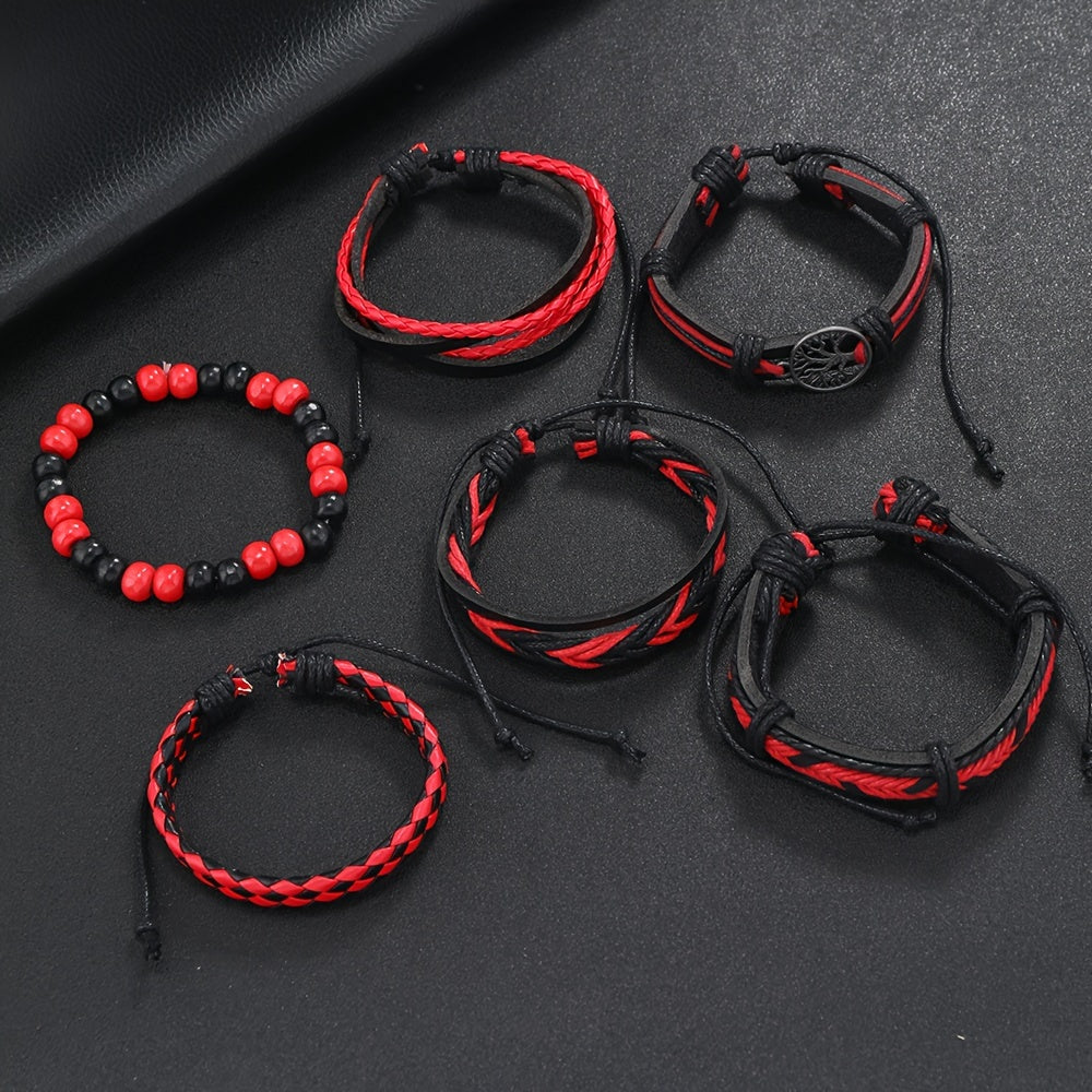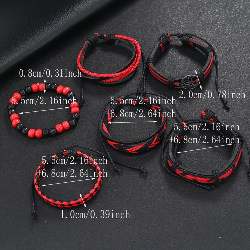 Enhance your style with this set of 6 retro woven PU leather bracelets featuring life tree designs. Perfect for casual or formal wear.