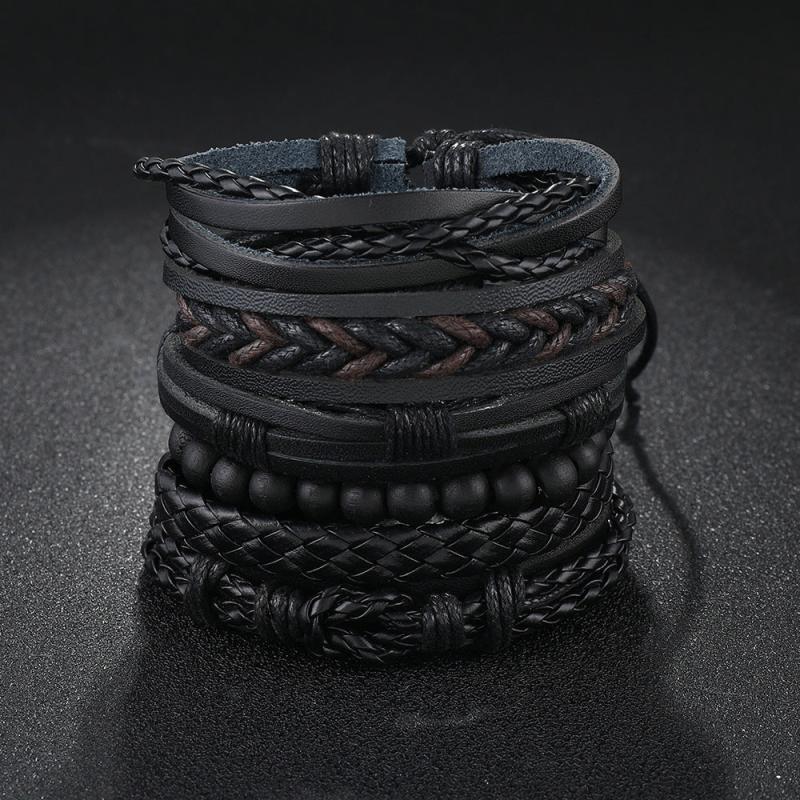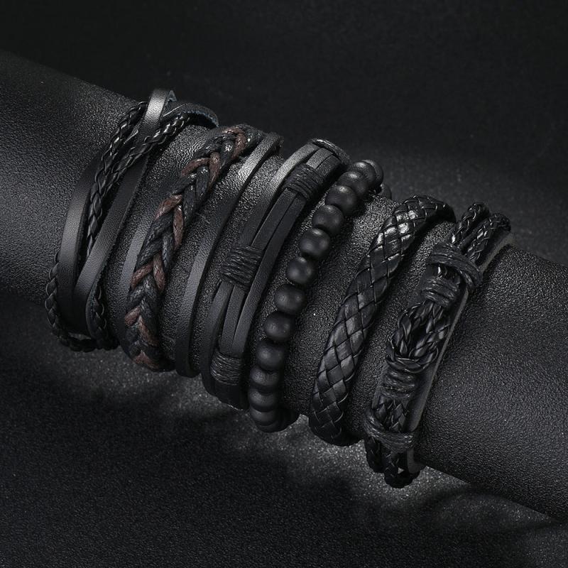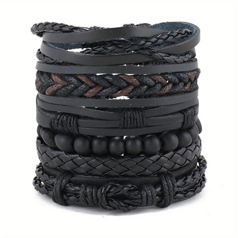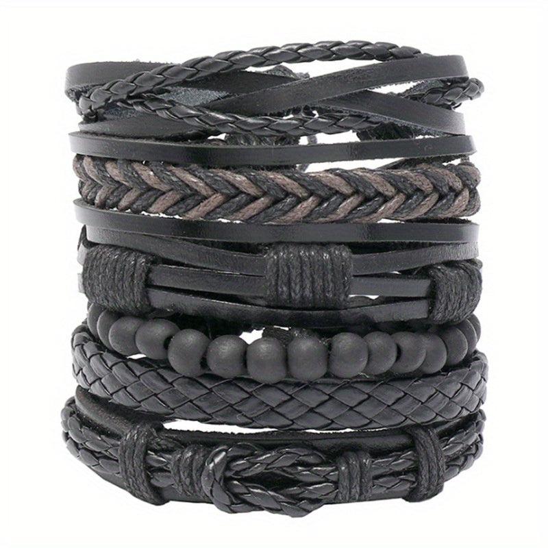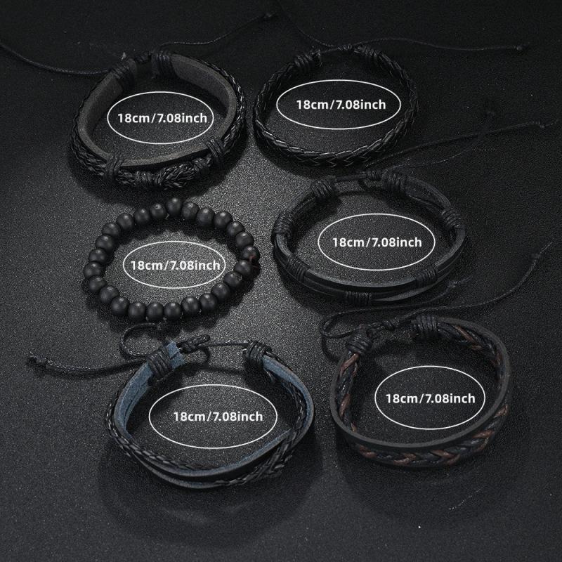Enhance your wrist with this 6-piece set of fashionable retro bracelets made of woven PU leather. Perfect for men looking to elevate their accessory game.