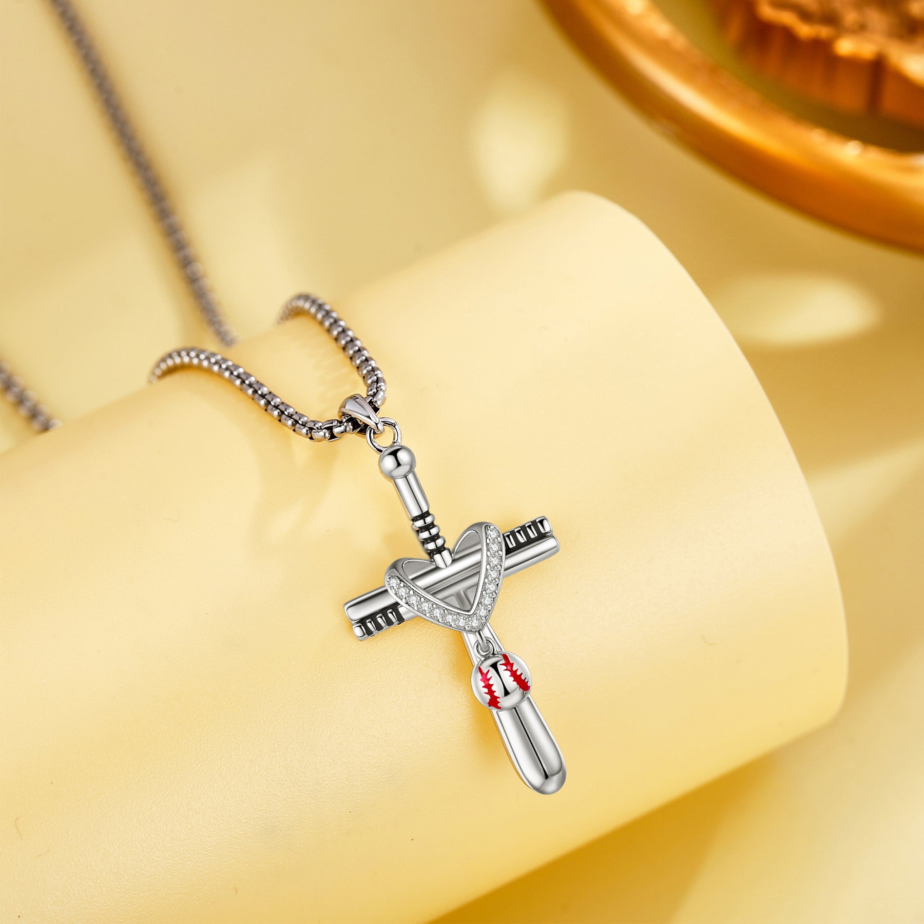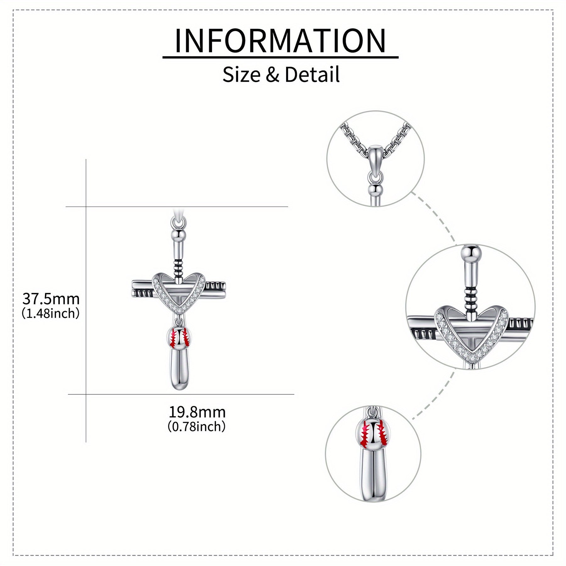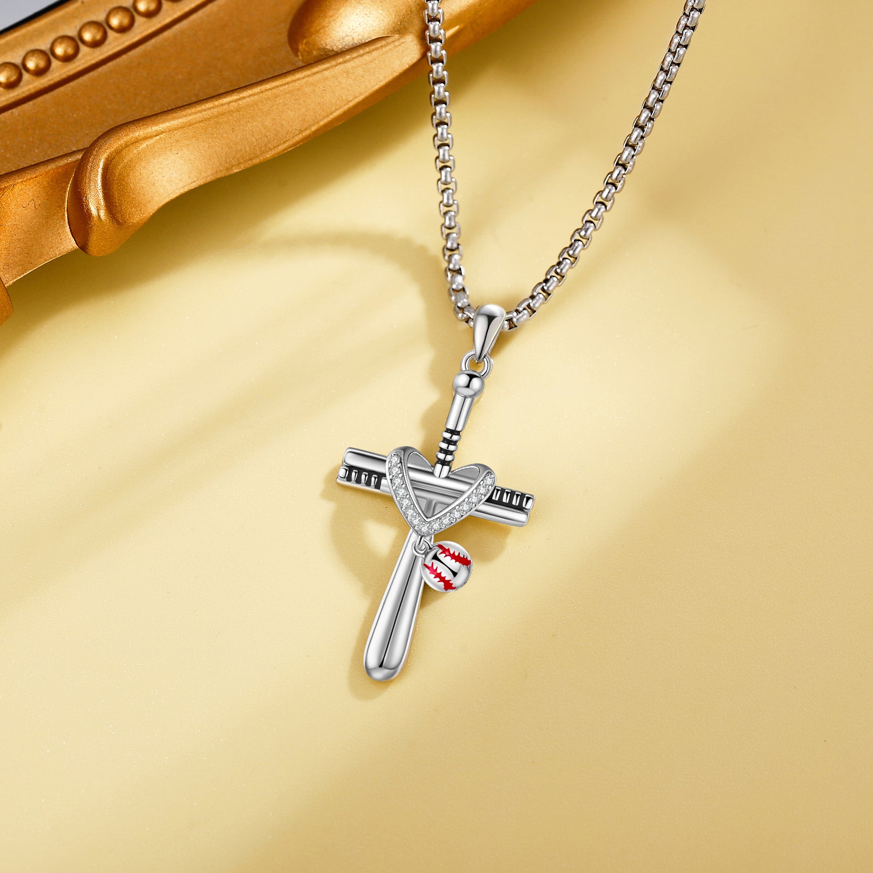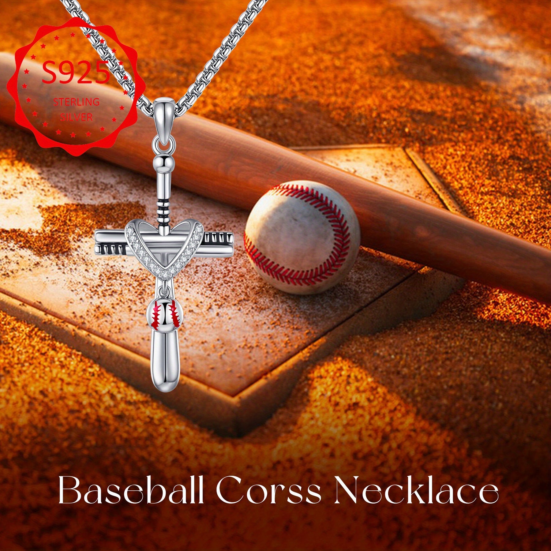 925 Sterling Silver Baseball Cross Necklace for Women Men