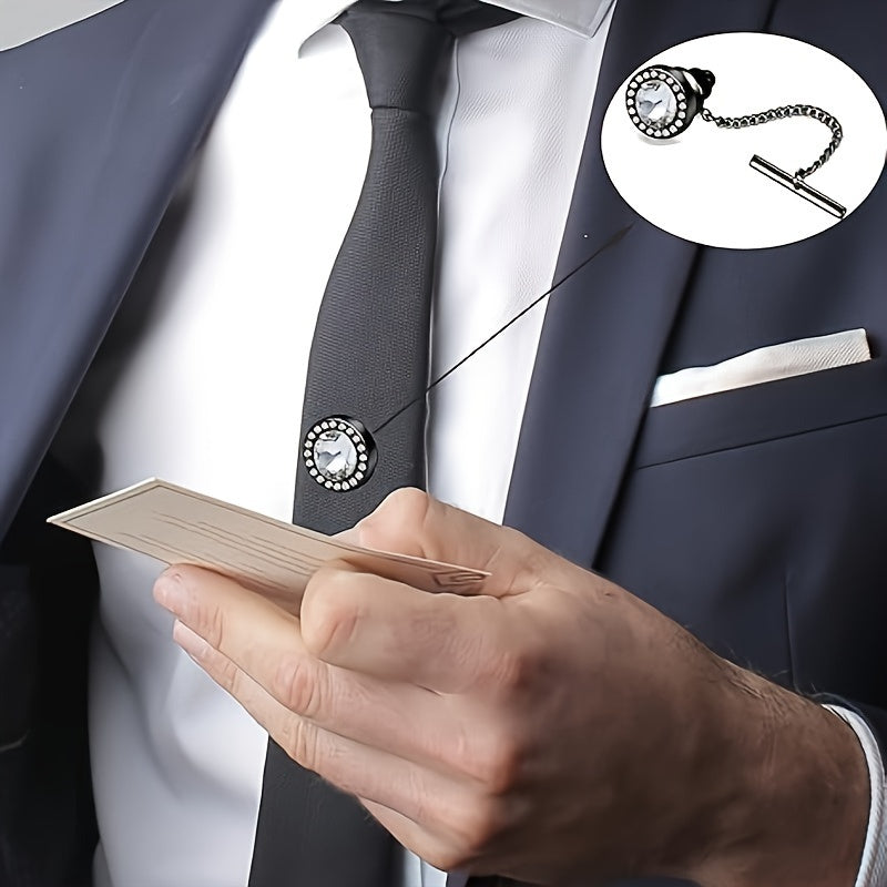 Elevate your look with this set of 9 tie pin chains in silvery and golden tones. Perfect for meetings, parties, and business attire.