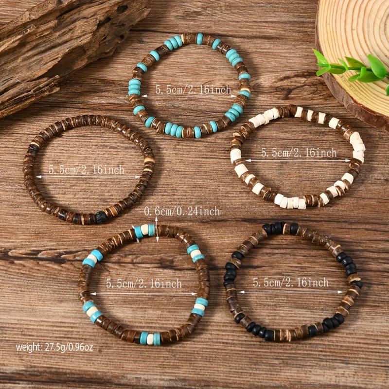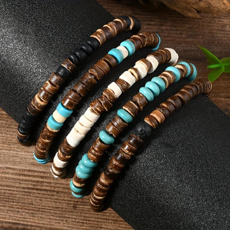 • Handmade adjustable coconut shell bead bracelet set