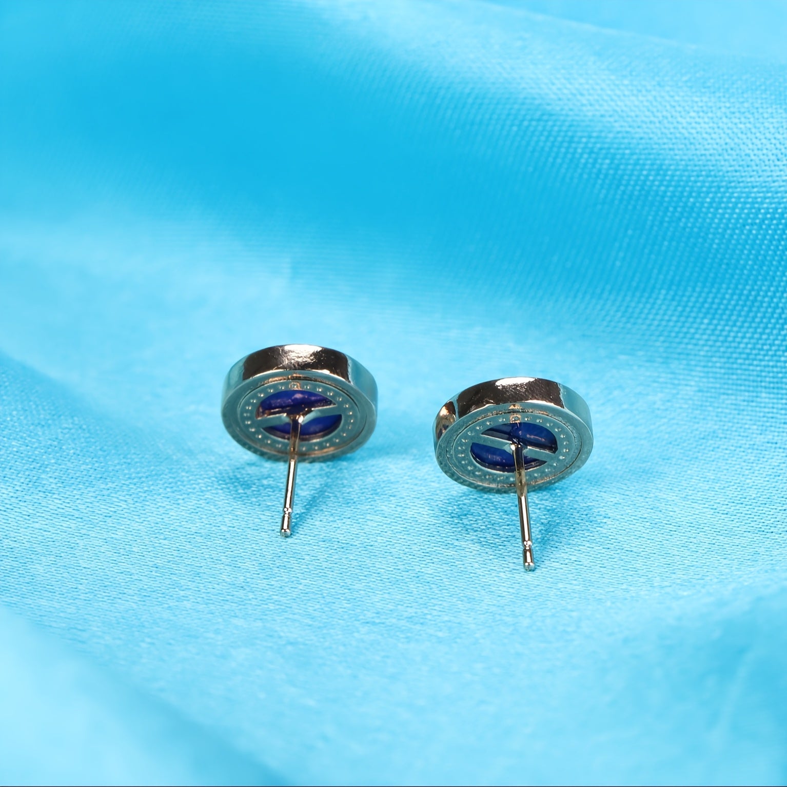 Handcrafted natural Afghan Lapis Lazuli stud earrings featuring Roman numerals. Perfect holiday gift for men's accessories, classic stud earrings for daily wear.