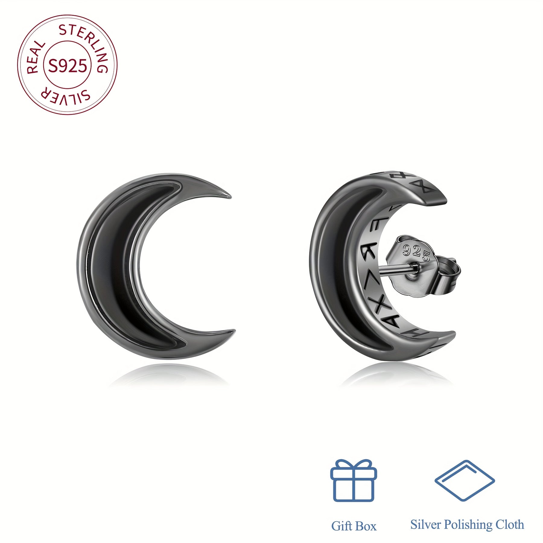 These unique agate earrings are crafted from high-quality 925 sterling silver, featuring Viking moon design with runes. Suitable for both men and women.