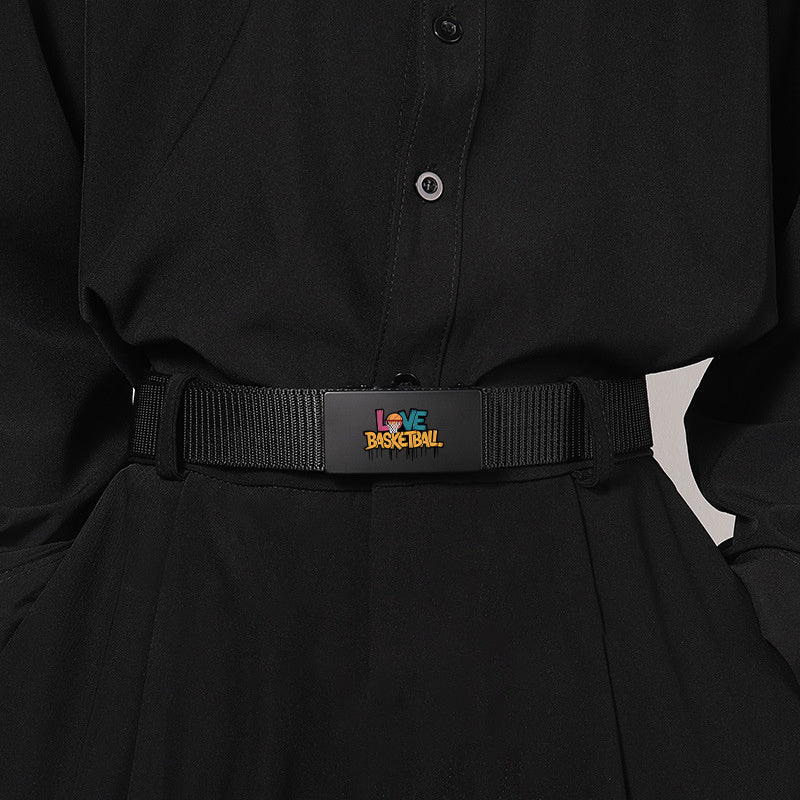 Upgrade your style with this versatile daily belt featuring a basketball text pattern. Perfect for business pants or casual wear, this belt is a great gift for any occasion.