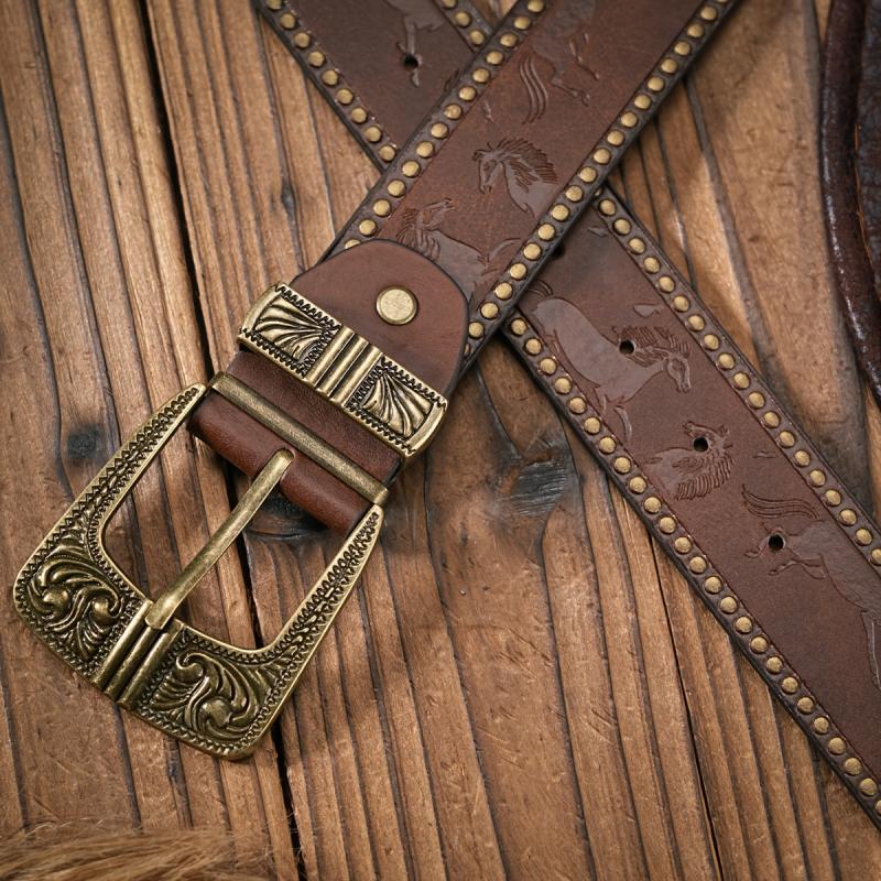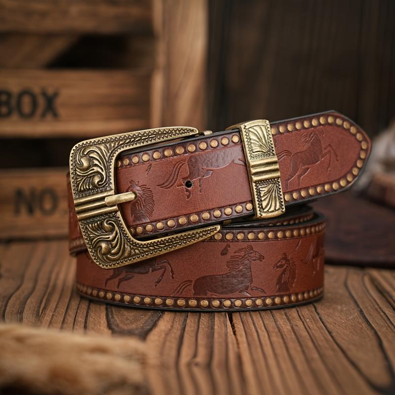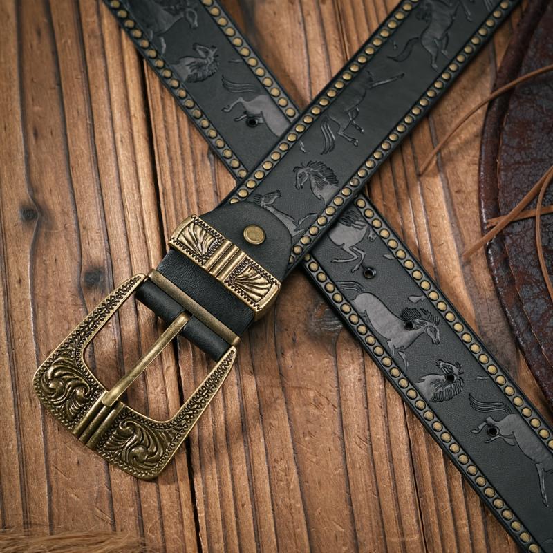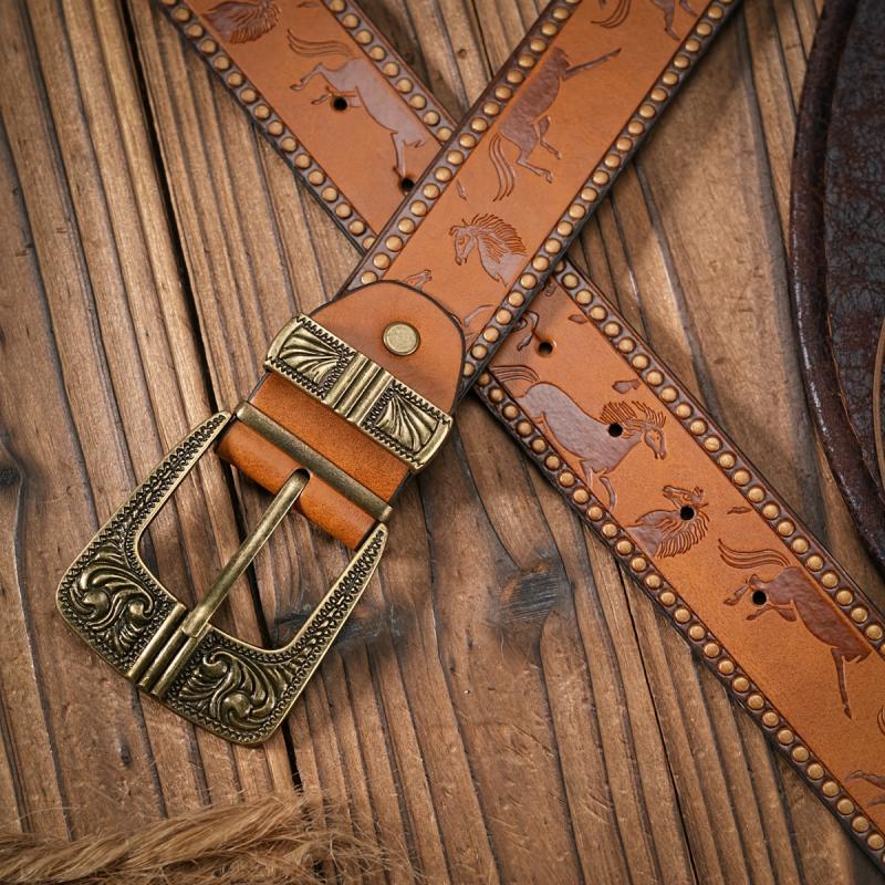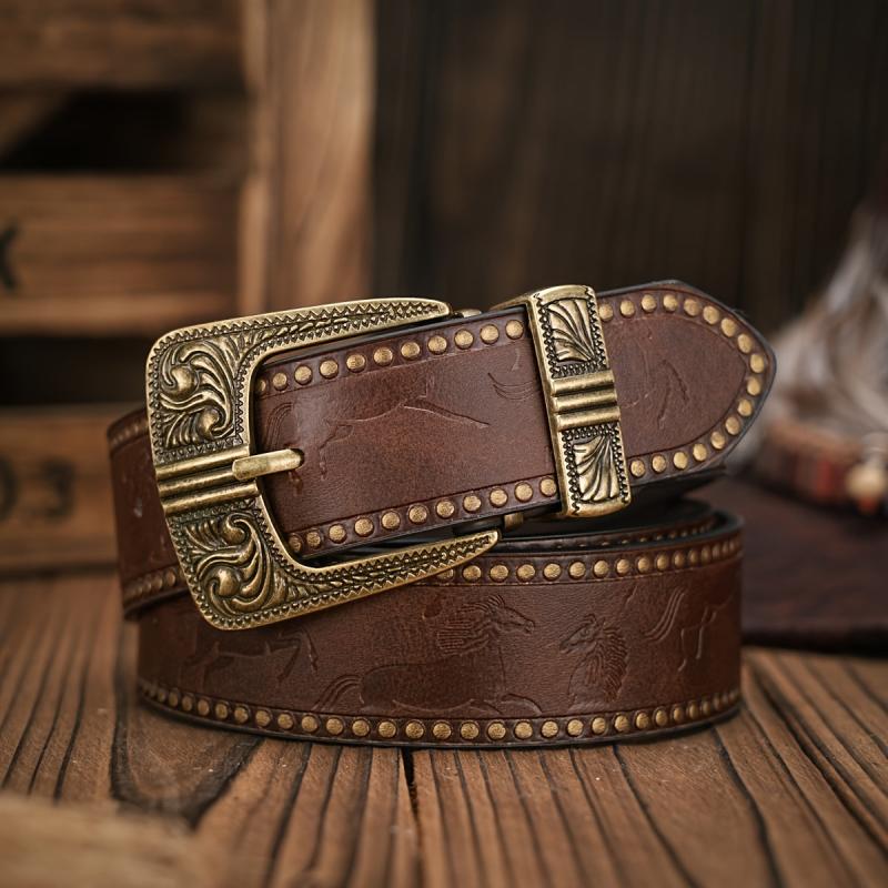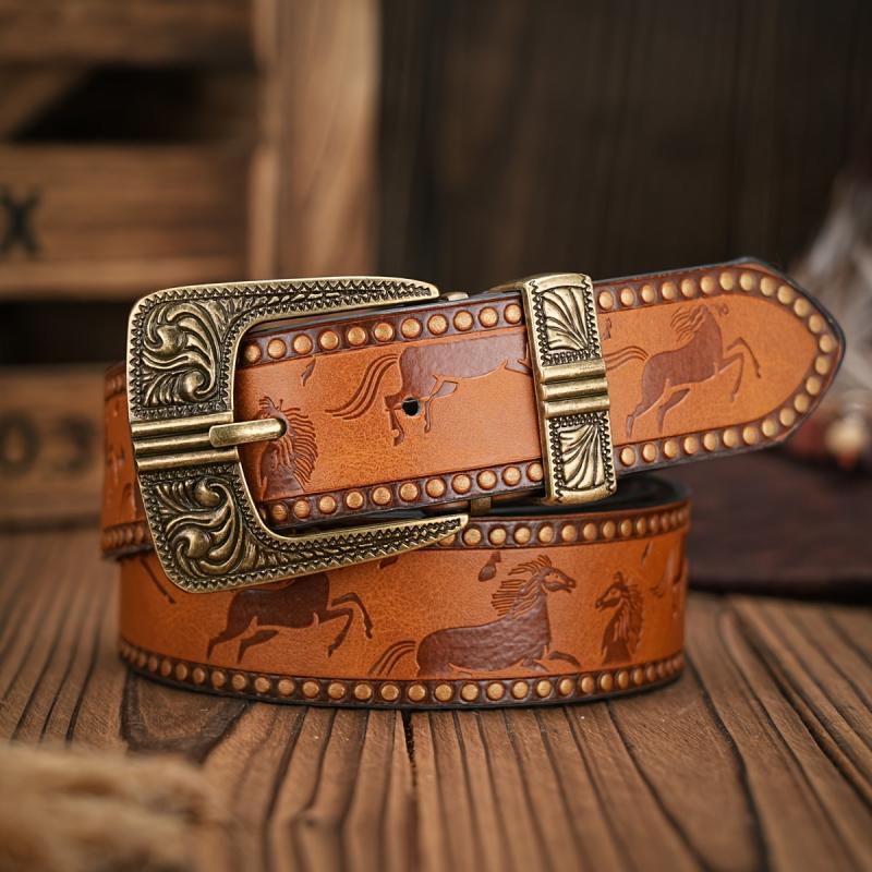 Elevate your casual or business wear with this bohemian style faux leather belt. It comes with an embossed alloy buckle and includes a hole puncher for a customized fit.