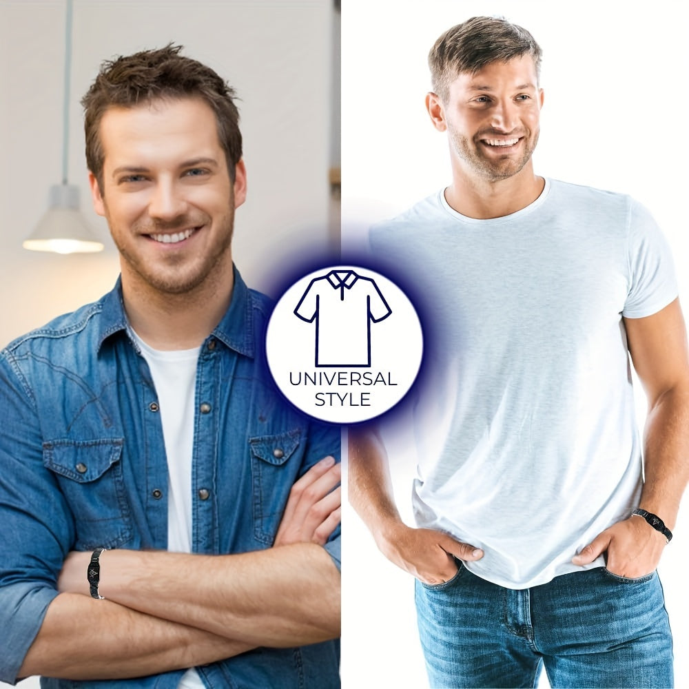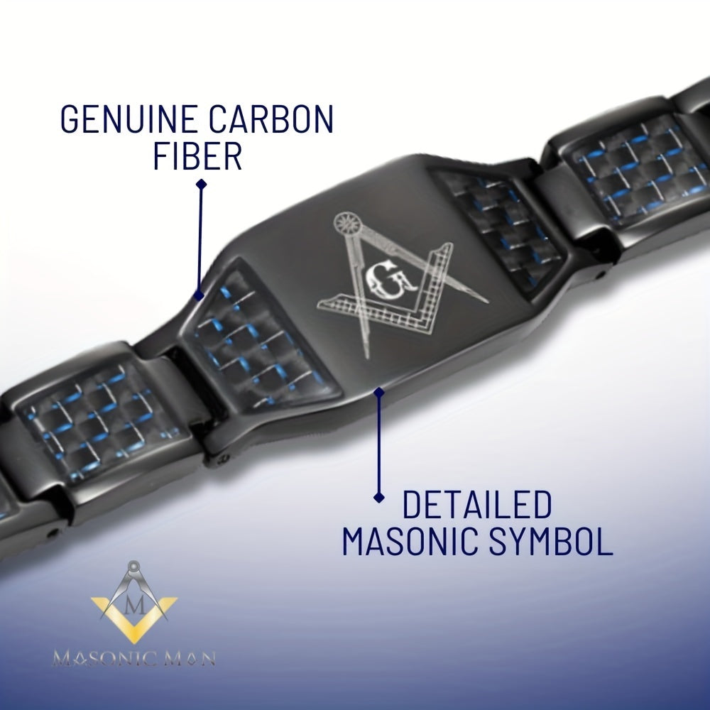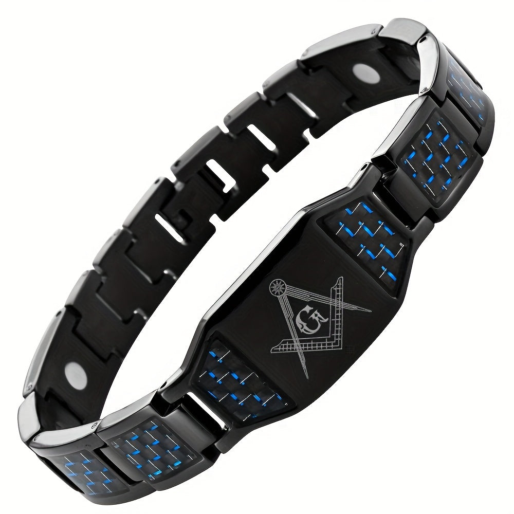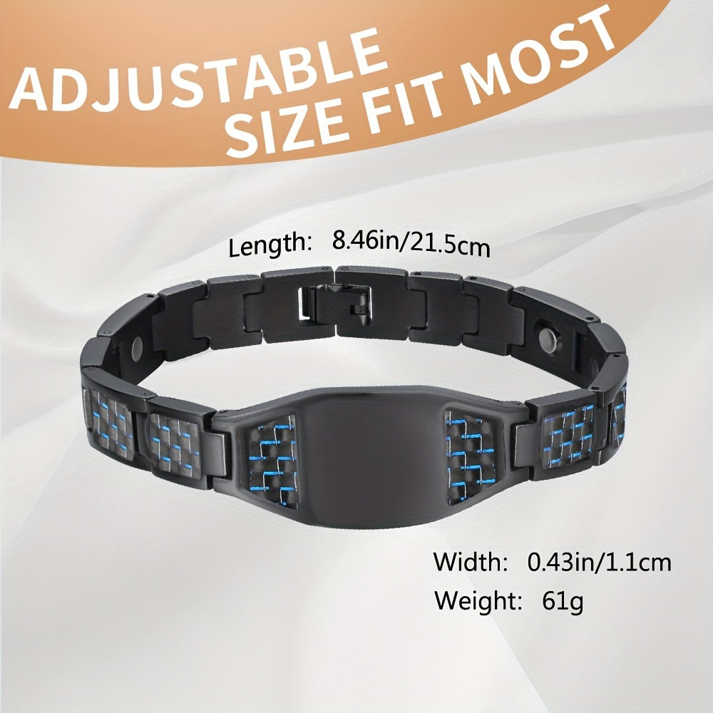 This stylish bracelet is made of hypoallergenic stainless steel with a sleek carbon fiber design. It's a perfect gift for parents or loved ones.