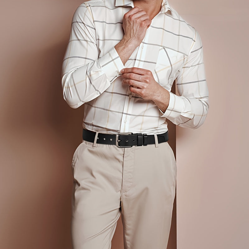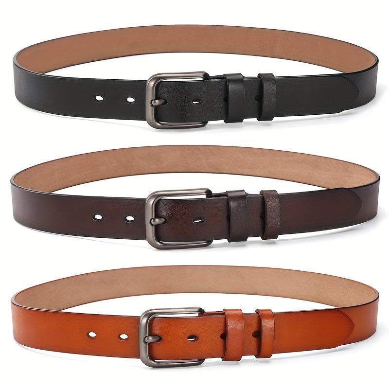 High-quality cowhide leather belt with a stylish retro buckle, perfect for jeans or casual pants. This durable and comfortable belt makes a great birthday gift for men.