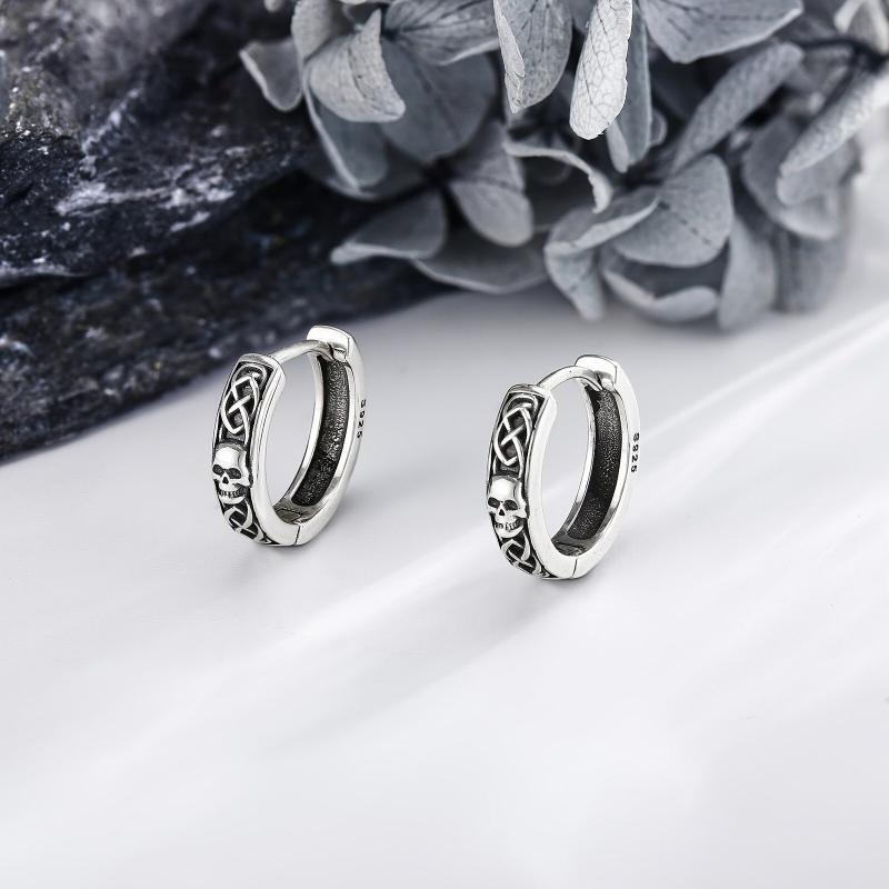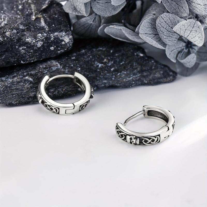 These Celtic skull earrings are crafted from 925 sterling silver, featuring a unique Viking design. Perfect for both men and women, these hoop earrings add a touch of mystique and style to any outfit.