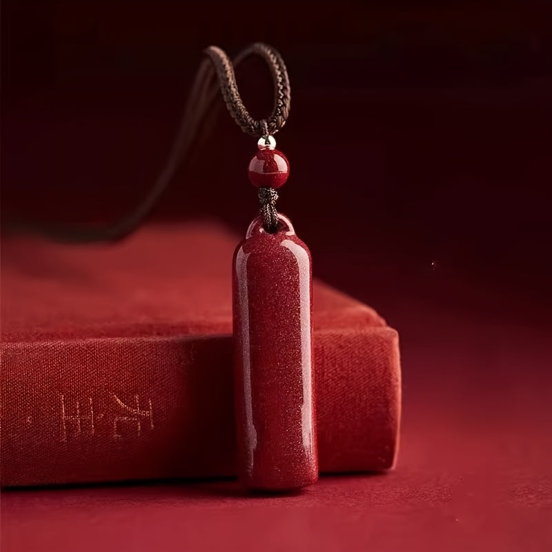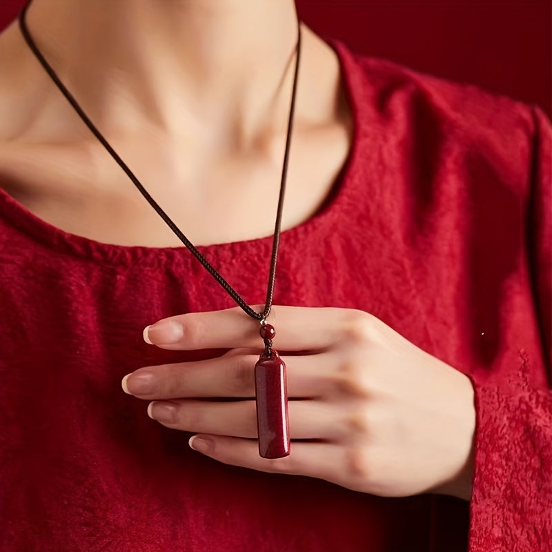 Elevate your casual attire with this stunning Cinnabar Zodiac Pendant Necklace featuring a natural red stone peace amulet. It's perfect for all genders and occasions.