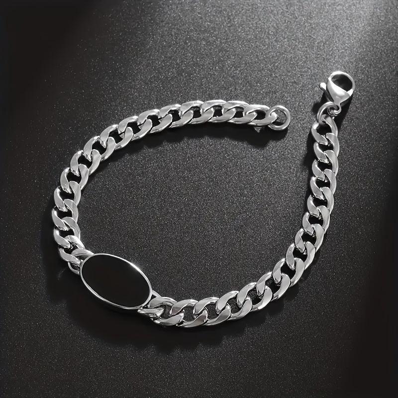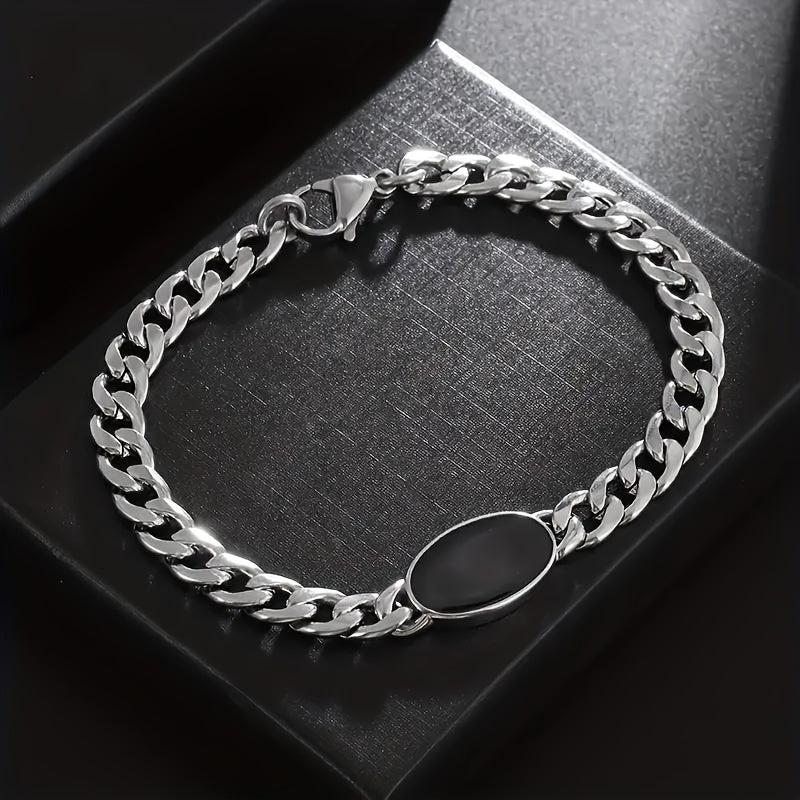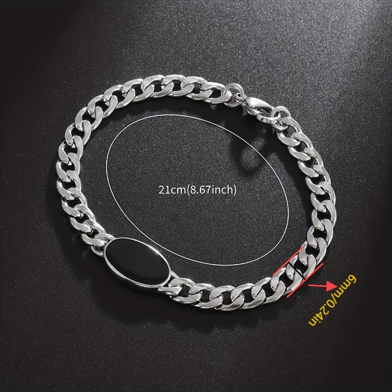 Elevate your style with this classic Cuban chain bracelet featuring an oval charm. Made from uncoated stainless steel and glass, this bracelet is perfect for parties and everyday wear.
