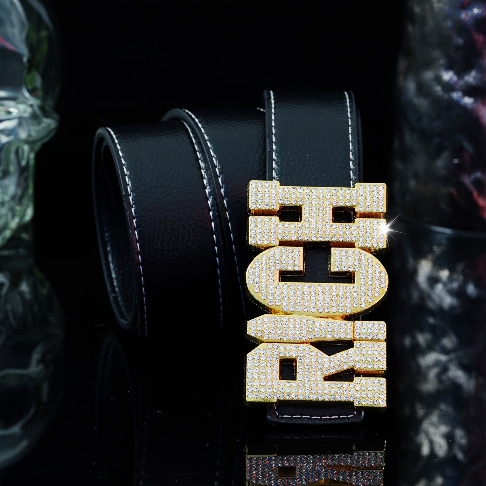 Enhance your style with this preppy belt featuring a rhinestone letter buckle. Made of faux leather, perfect for Valentine's, Mardi Gras, or campus wear.