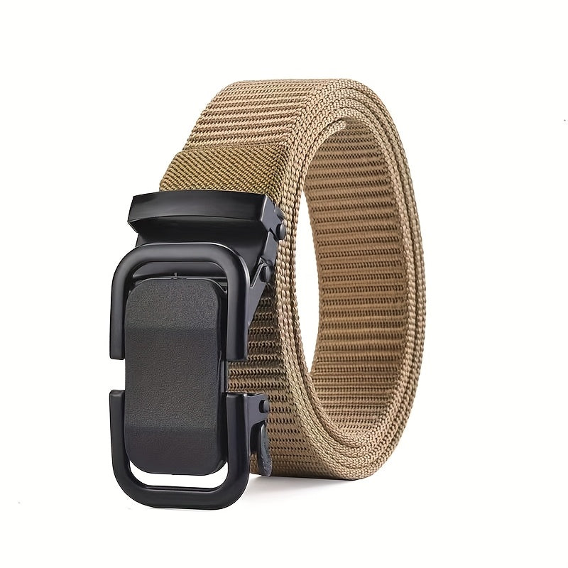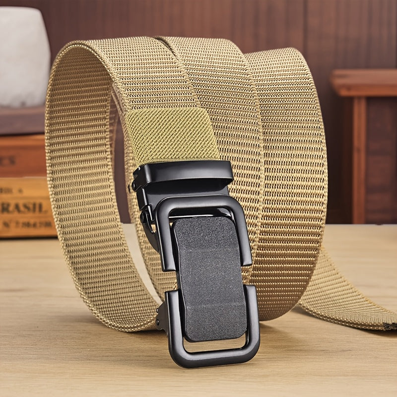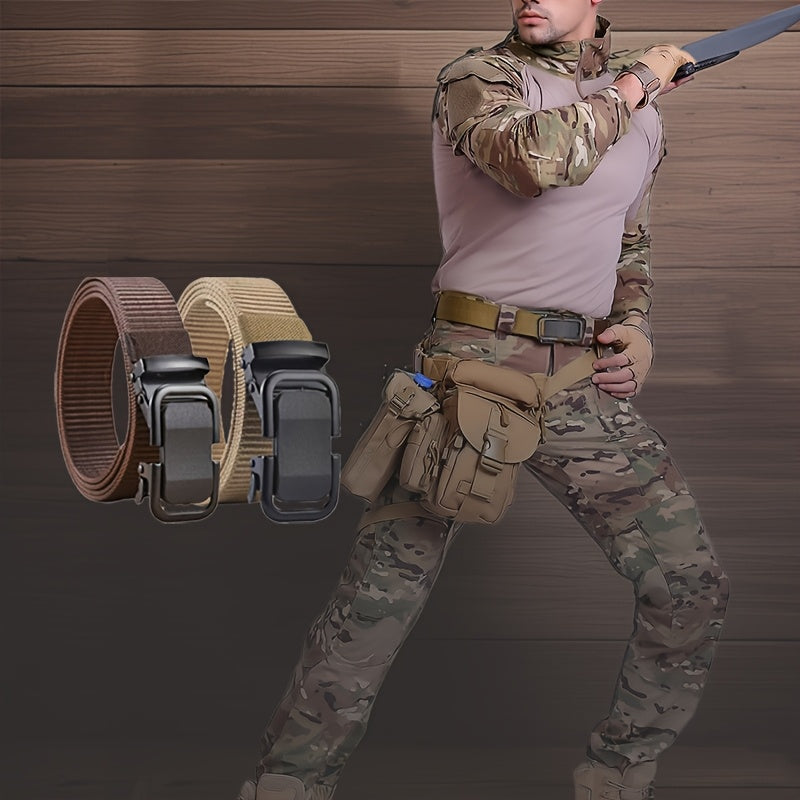 This tactical belt is designed for durability and features a quick release metal buckle. It comes in khaki and coffee colors with a woven design, making it perfect for outdoor activities.