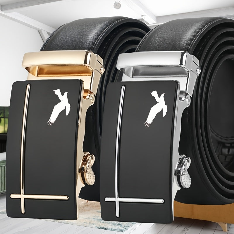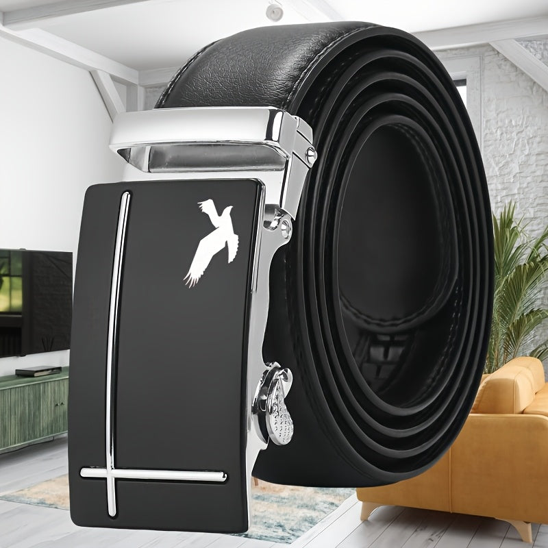Upgrade your style with this Eagle Pattern Men's PU Belt featuring an automatic buckle. The belt is adjustable, perfect for business casual or formal attire.