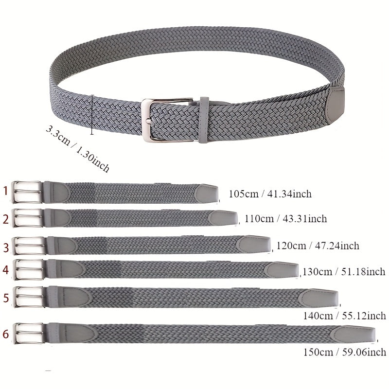 Stay comfortable and stylish with this versatile braided belt that fits a range of sizes. The button closure ensures a secure fit without the need for drilling. Perfect for casual wear, this unisex waistband is a must-have accessory.