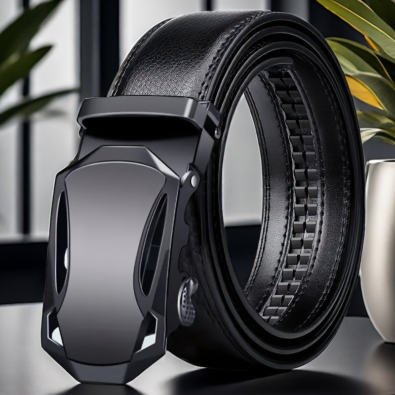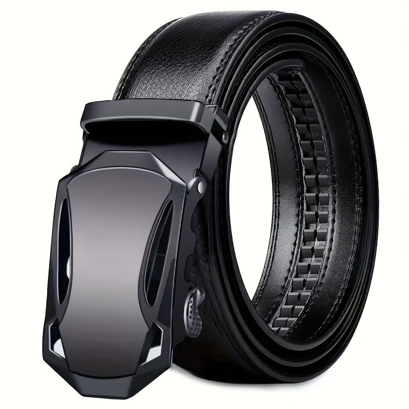 This sleek faux leather men's belt with automatic buckle is versatile for both business and casual styles. It features a high-textured finish, making it a perfect gift for Christmas or everyday wear.