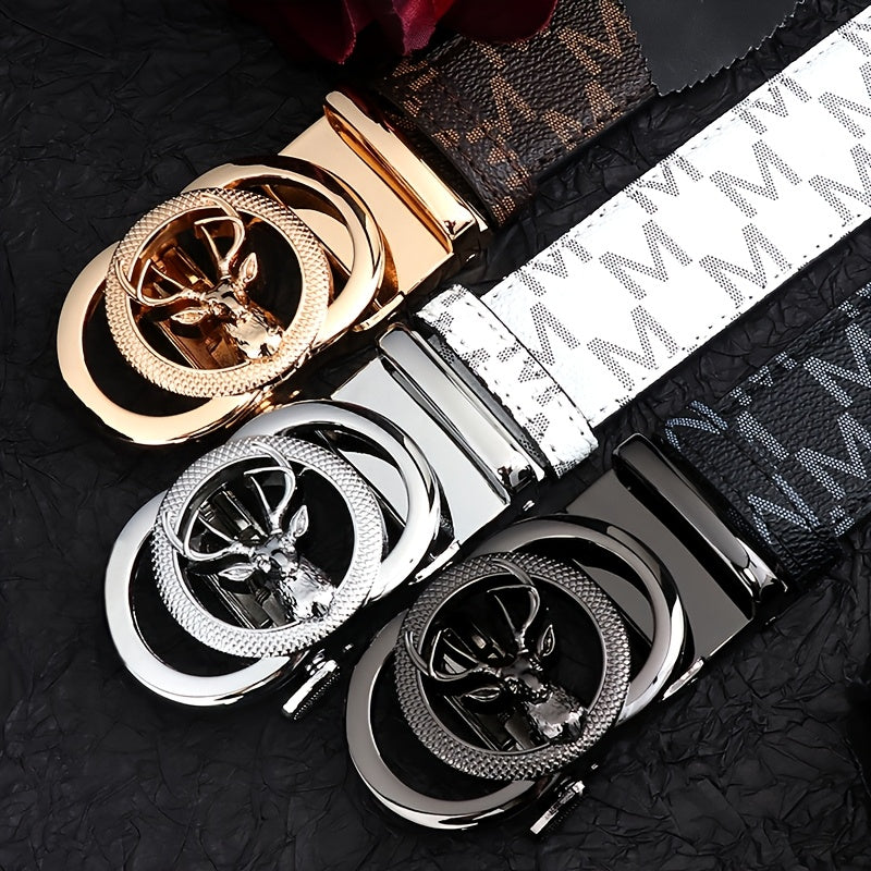 Elevate your casual attire with this stylish alloy buckle belt featuring a deer head design. The automatic buckle adds convenience to your outfit choices.