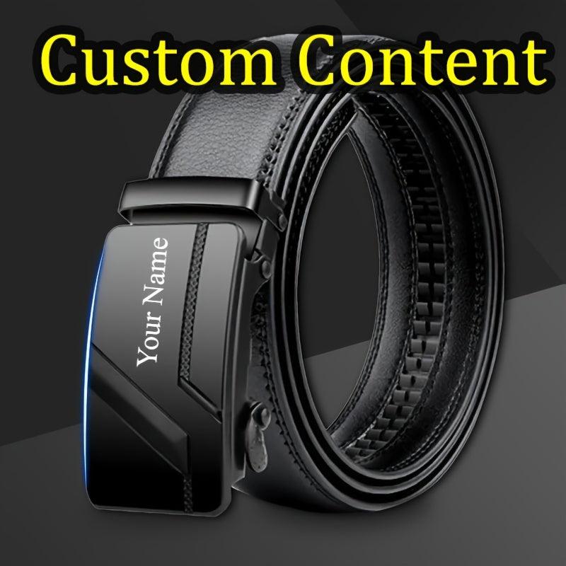 Upgrade your formal look with this sleek faux leather belt featuring customizable text and an automatic slide buckle. Perfect for teachers and formal events.