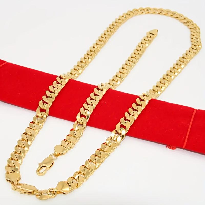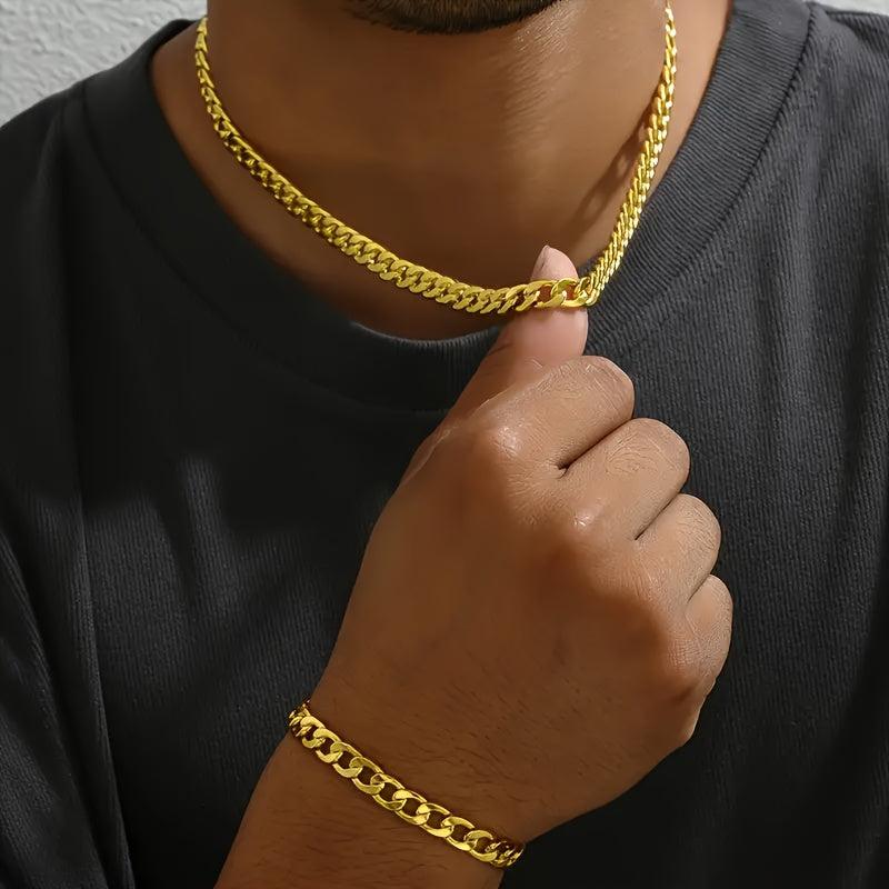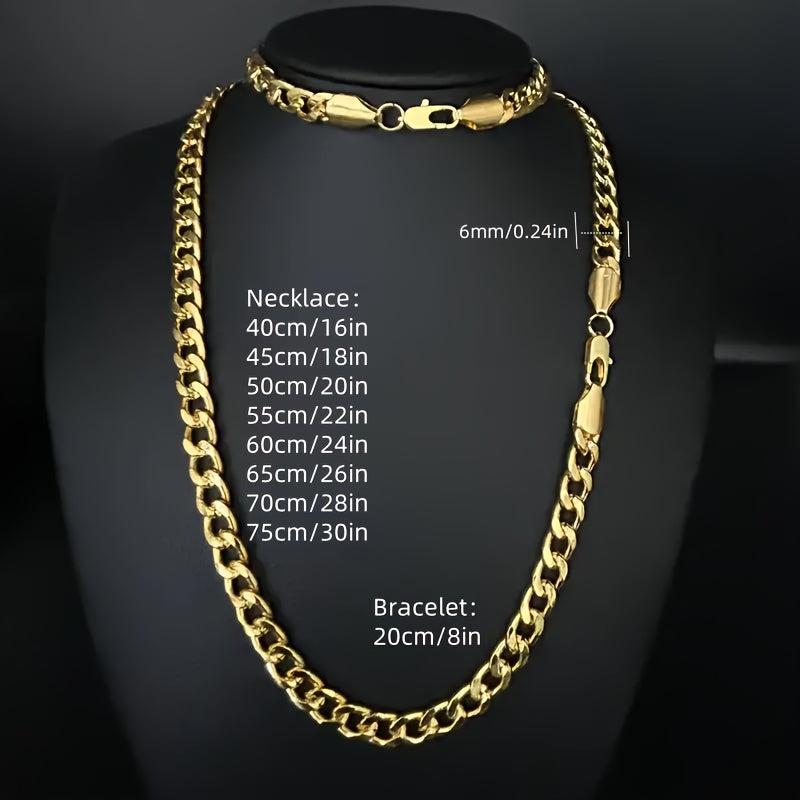Complete your look with this classic golden chain necklace and bracelet set made of high-quality titanium steel. Perfect for men's accessories with a European and American style.