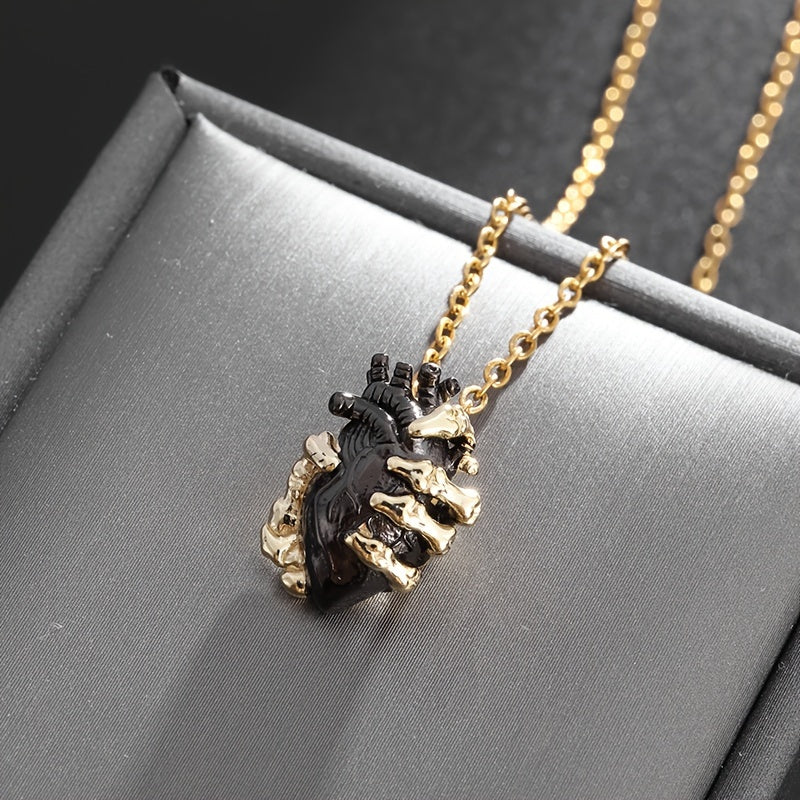 Add a touch of dark allure with this gothic skull evil heart shape pendant necklace, perfect for men who appreciate edgy accessories.