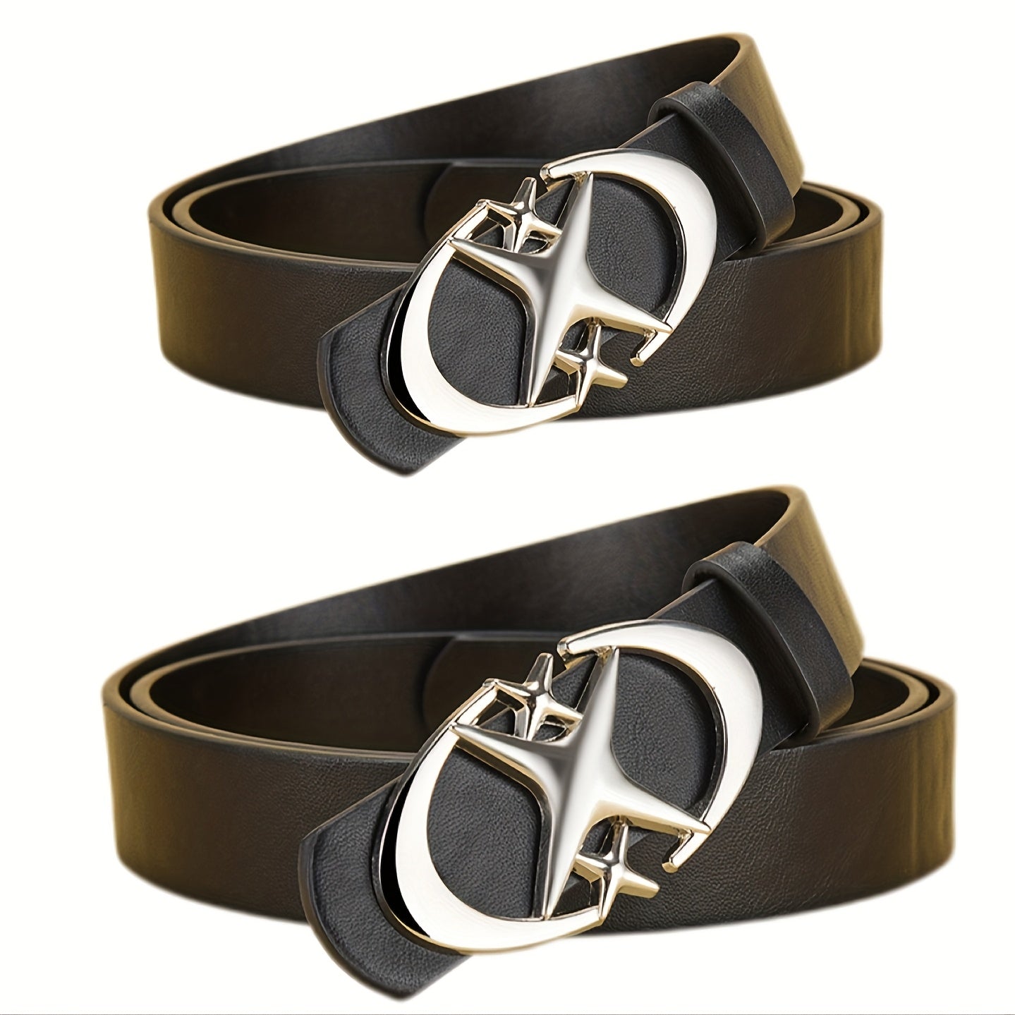 Unleash your inner rebel with this set of two vintage-inspired star buckle belts designed for young individuals with unique fashion sense.