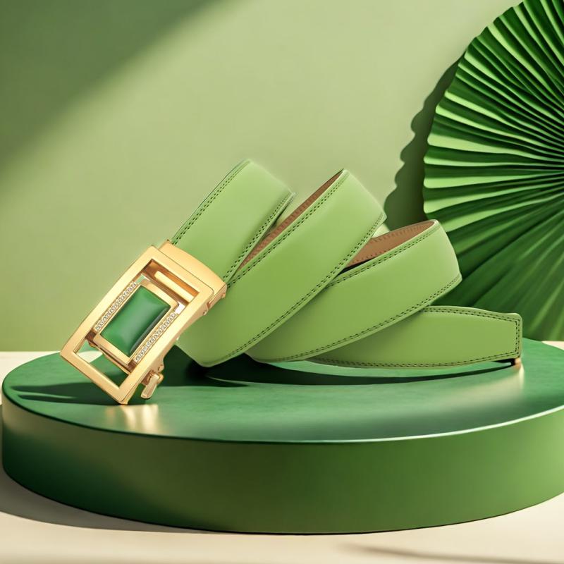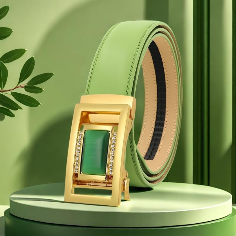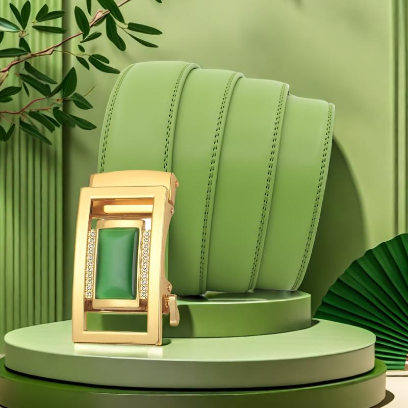 This green automatic buckle men's belt is a perfect formal accessory. Makes a great gift for your husband or dad.