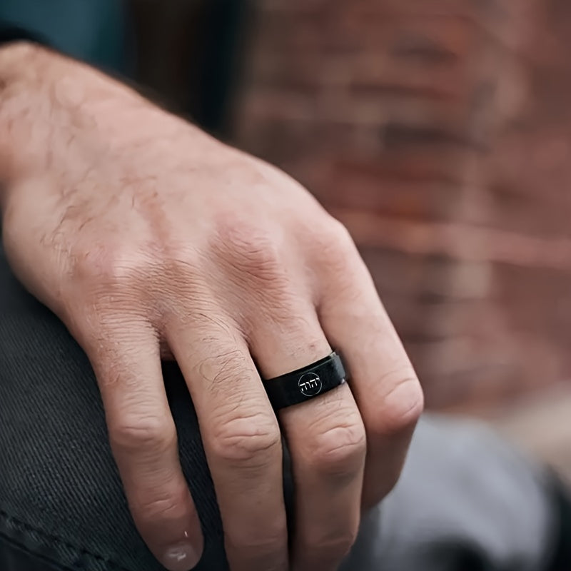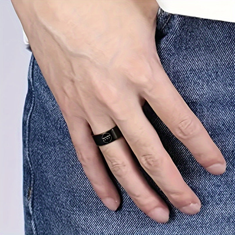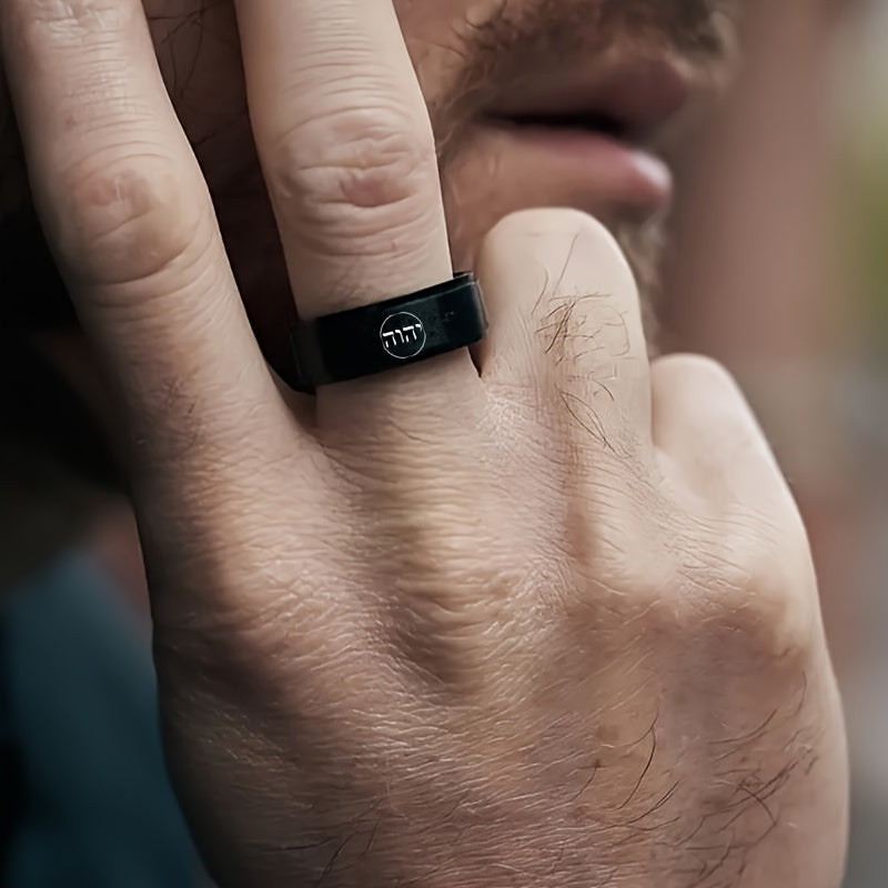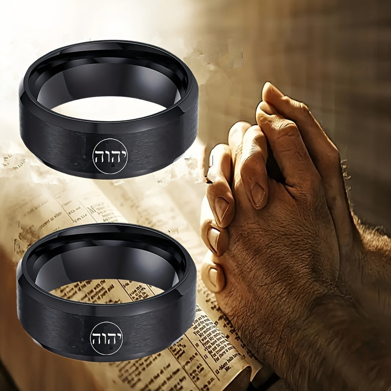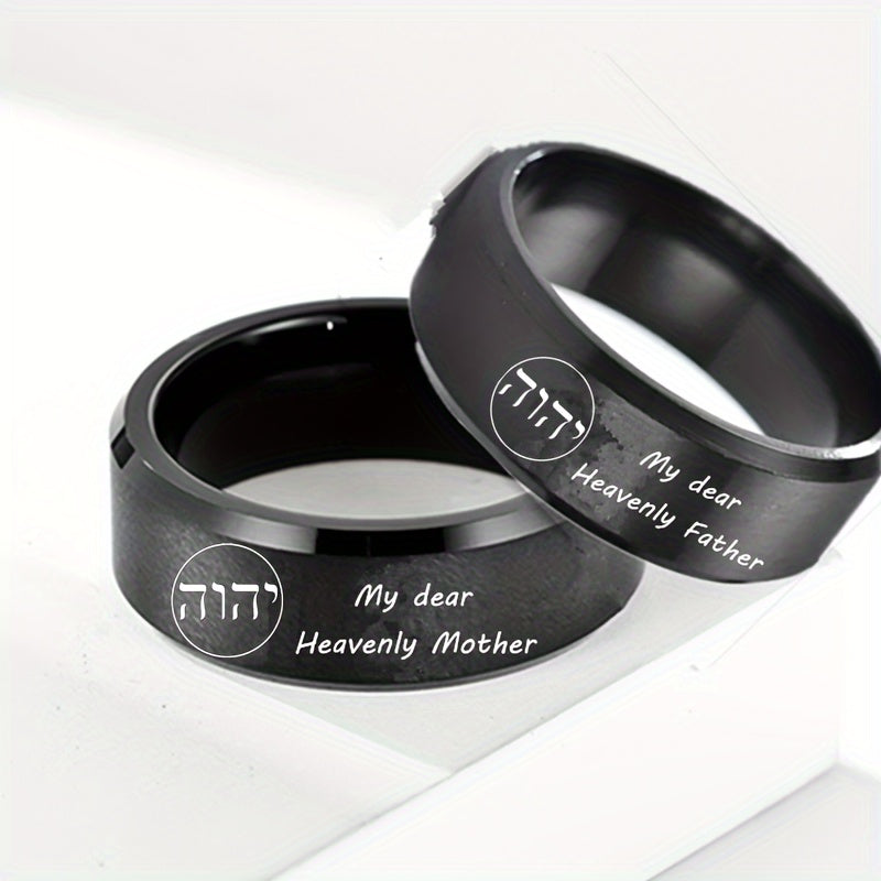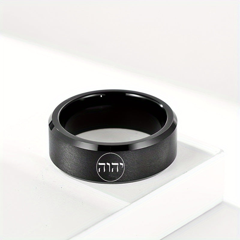 This custom stainless steel ring features 4 characters of Hebrew text, with an engraved date. Show your faith and style with this unique piece of jewelry.