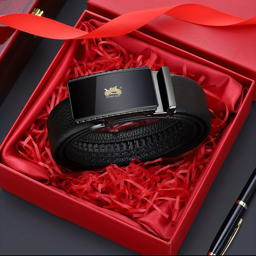 This stylish faux leather belt features a golden logo and is the perfect gift for men. It is a fashionable and durable accessory that adds a touch of luxury to any outfit.