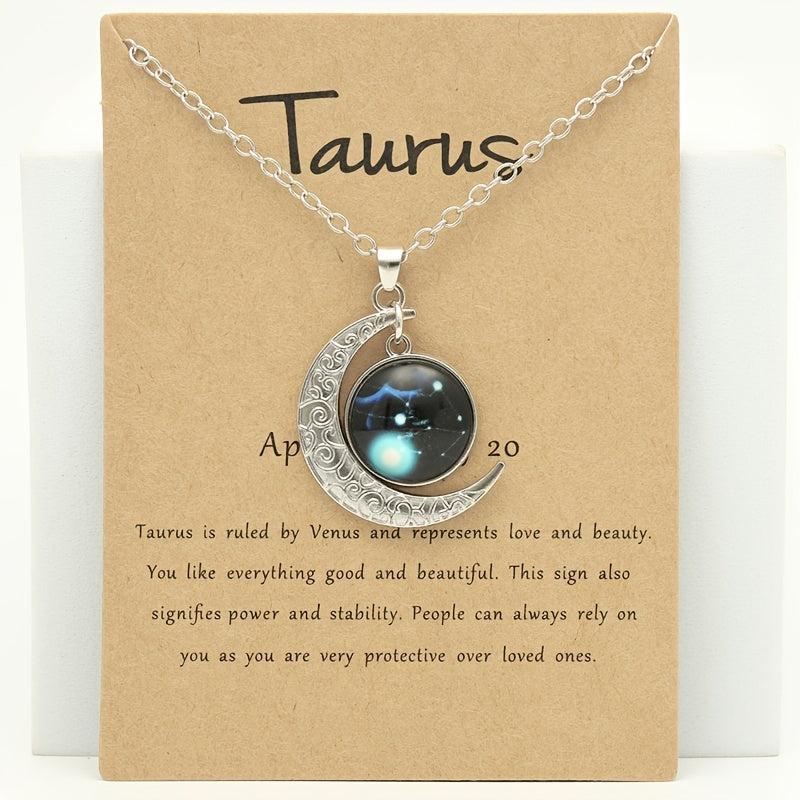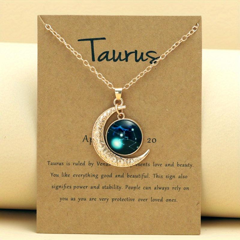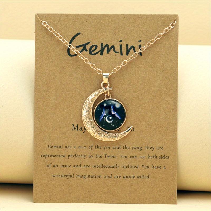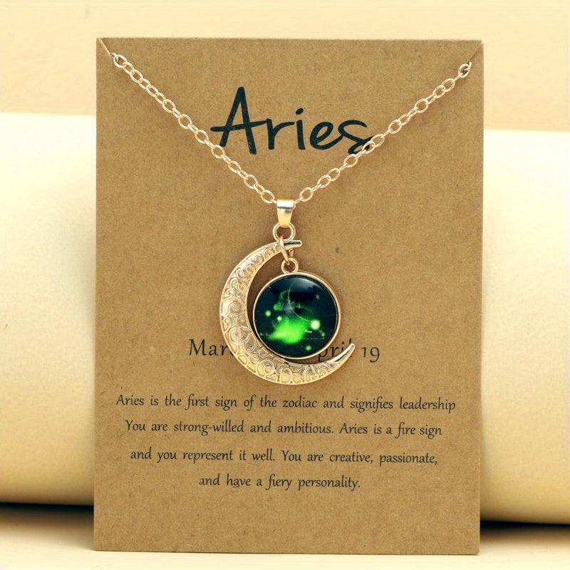 This cross-border short necklace features a retro moon pendant with the 12 zodiac signs, giving it a mystical and chic look. The pendant is designed to glow in the dark, adding an enchanting touch to your outfit.