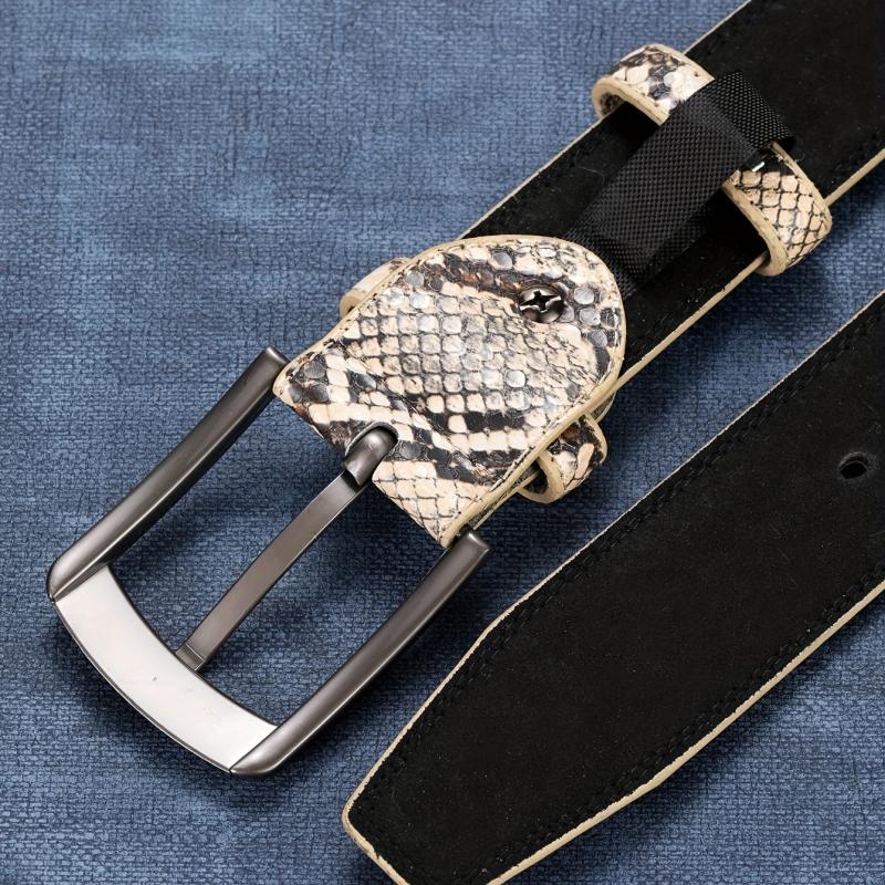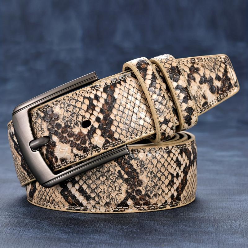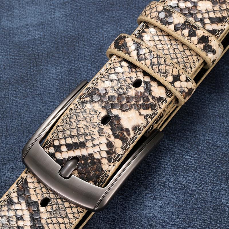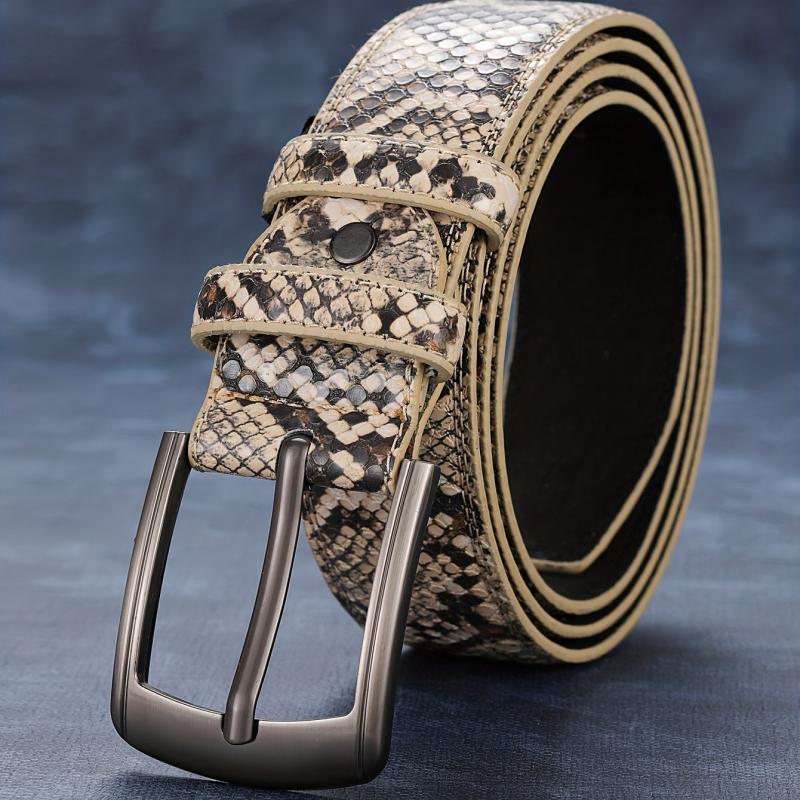 Elevate your style with this khaki pattern belt featuring a pin buckle design.