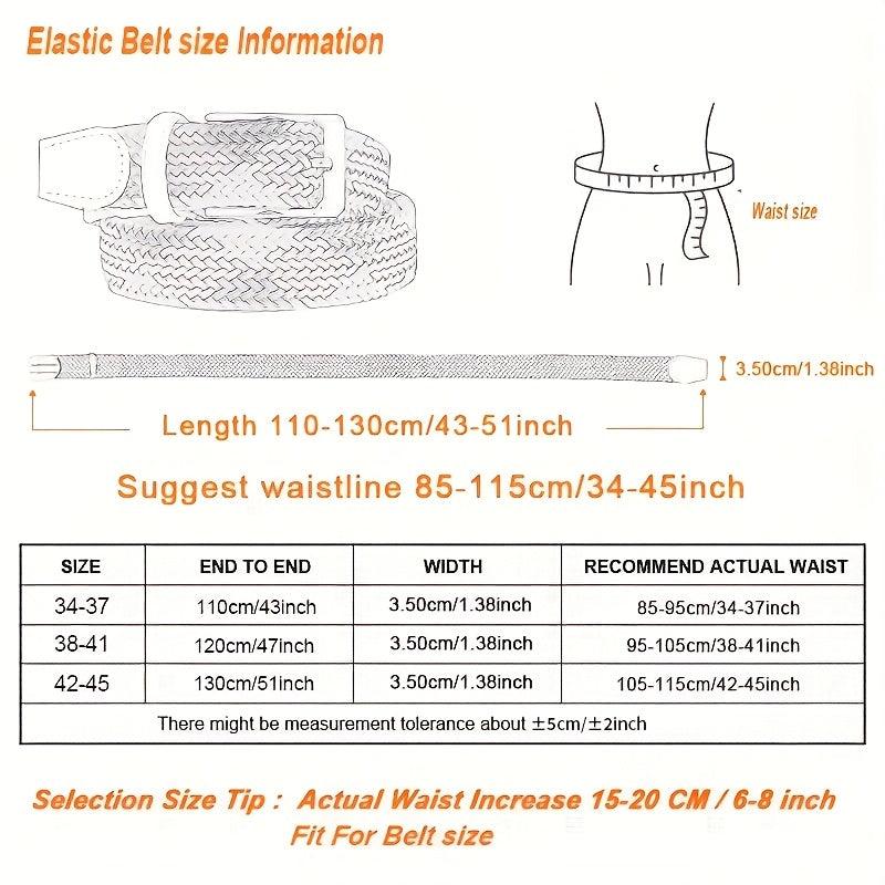 This versatile belt is suitable for men and women. It is made of elastic woven material, making it a comfortable and stylish accessory for your casual pants and jeans.