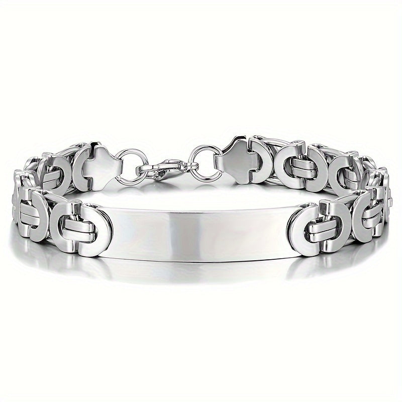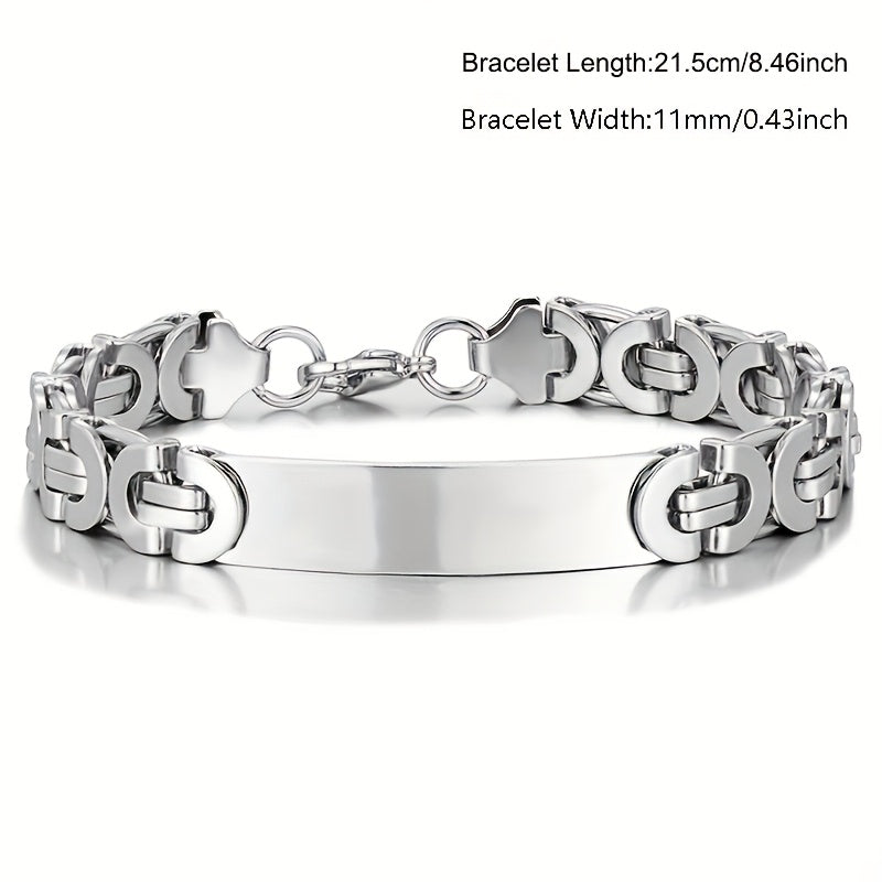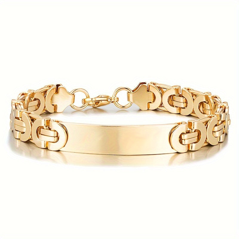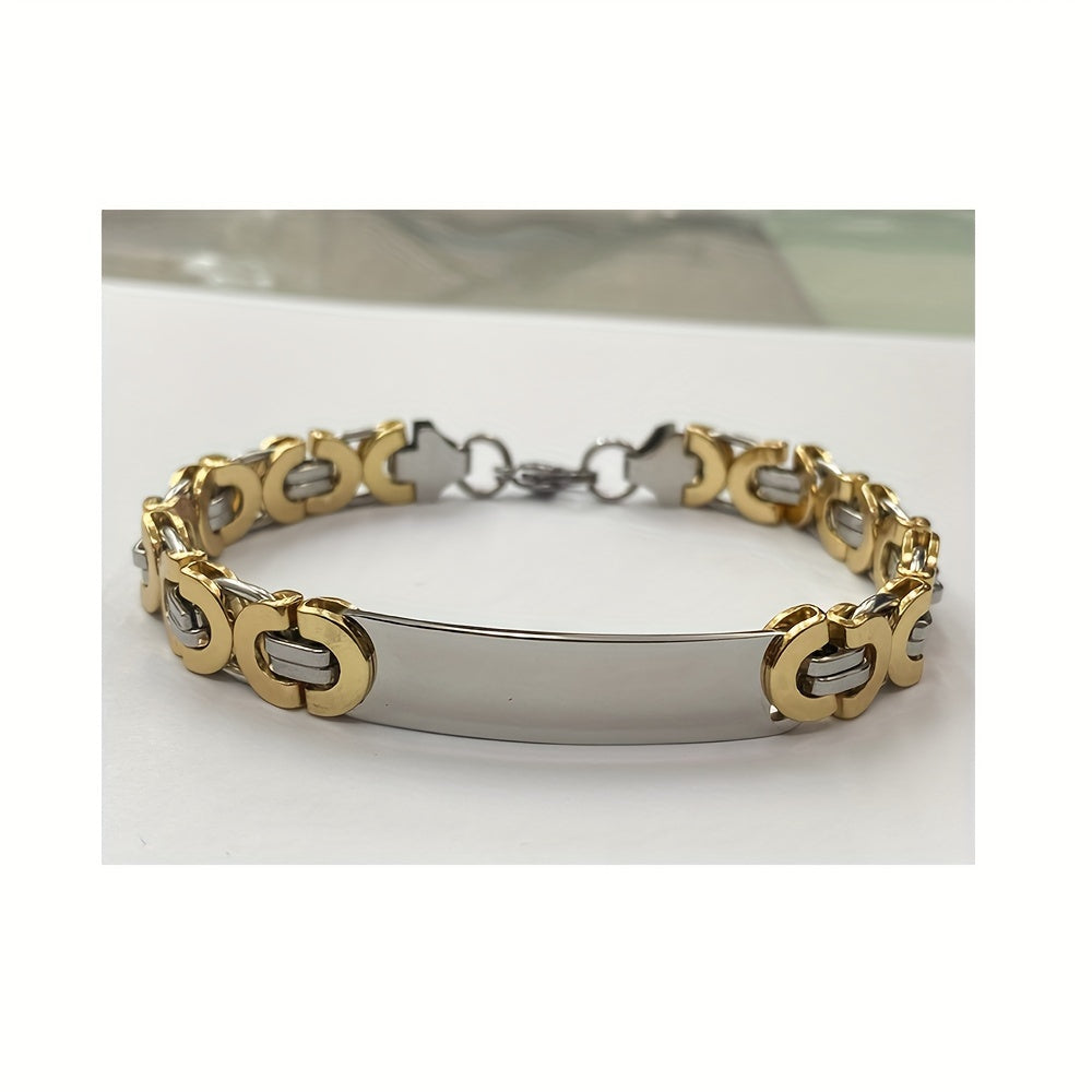 This casual style men's chain features an 18K plated polished ID tag on a 304 stainless steel 11mm wide link chain. The magnetic clasp closure adds convenience and security.