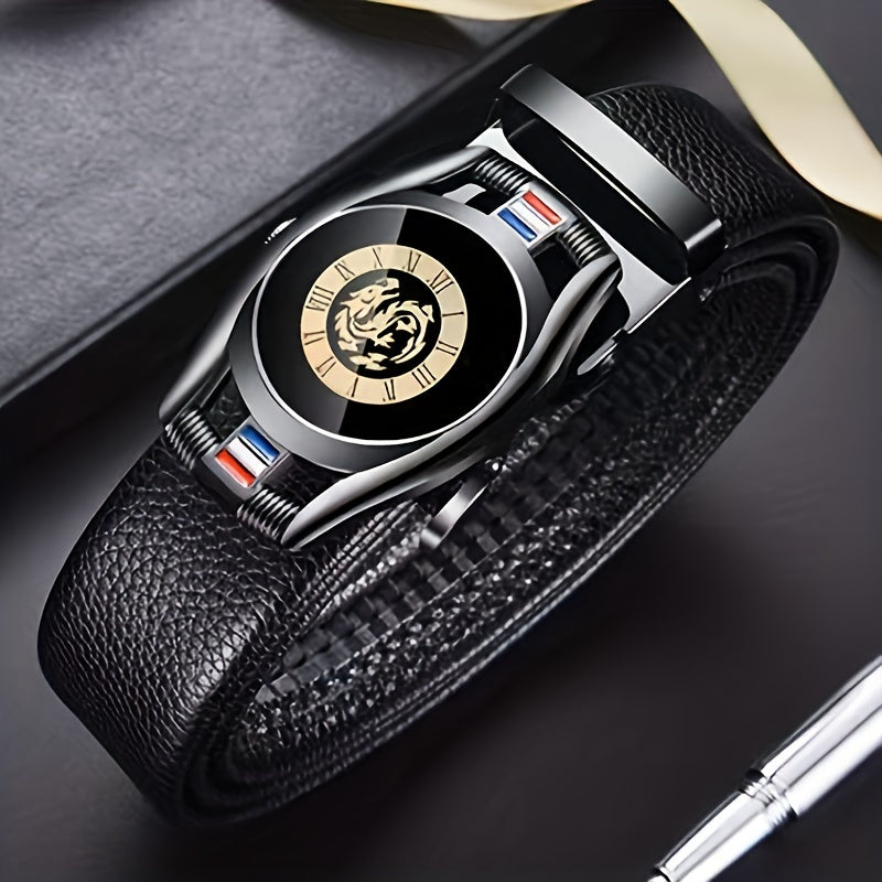 Stay stylish with this men's sports style belt featuring an automatic alloy buckle and faux leather strap. Perfect for business or casual wear, it makes an ideal gift for any occasion.