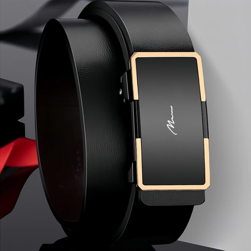 Elevate your look with this stylish men's belt featuring a sleek design with red stitching. Perfect for both formal and casual occasions, this belt is made of high-quality faux leather with a quick release alloy buckle.