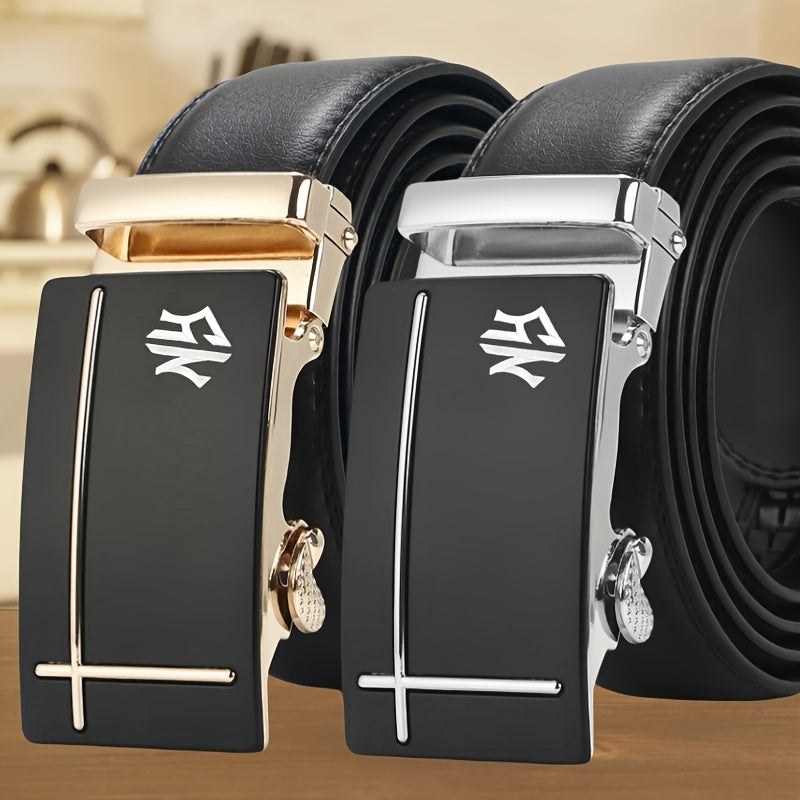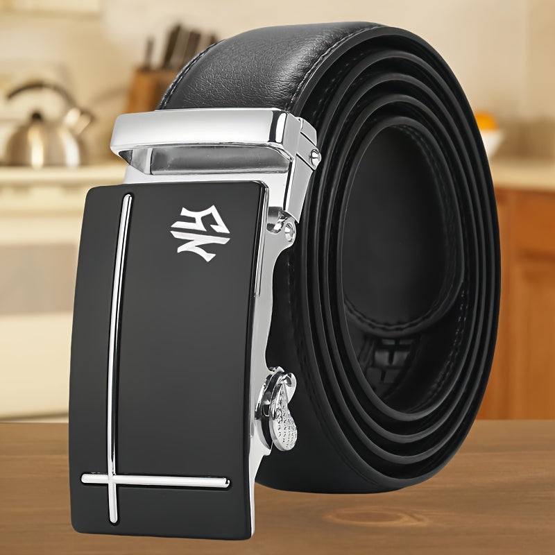 Elevate your style with this sleek faux leather belt featuring an alloy automatic buckle. Perfect gift for the modern man.