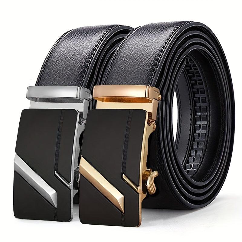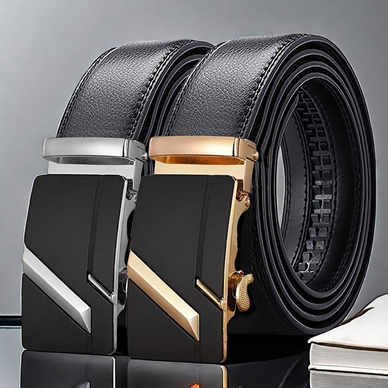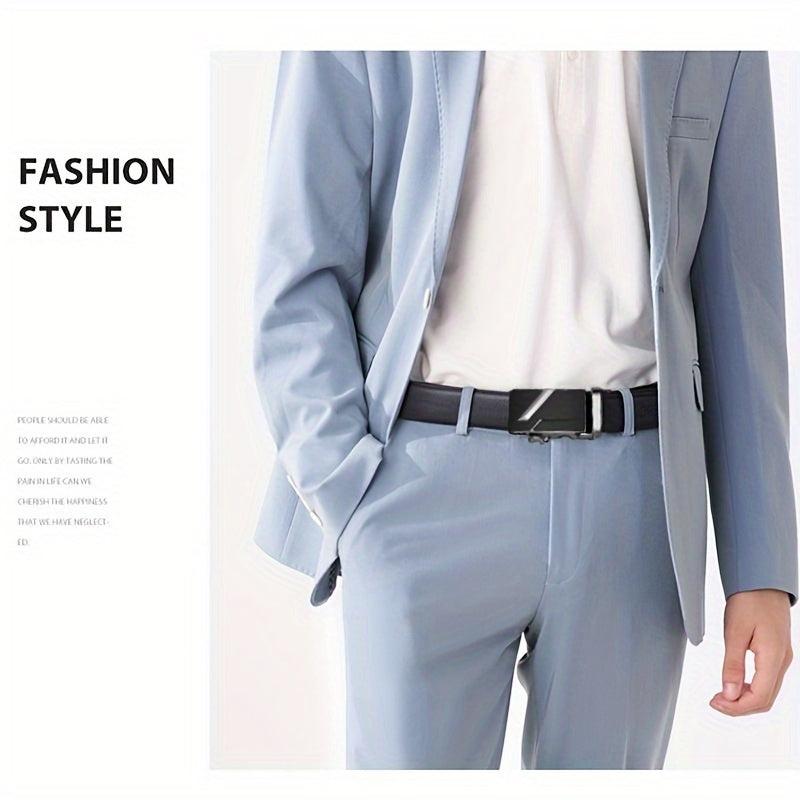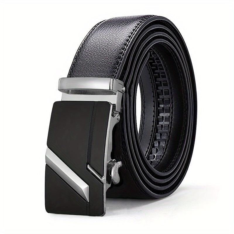 This men's automatic buckle belt features an embossed faux leather strap with an alloy buckle. Perfect for business casual outfits and ideal for Christmas, Valentine's Day, St. Patrick's Day.