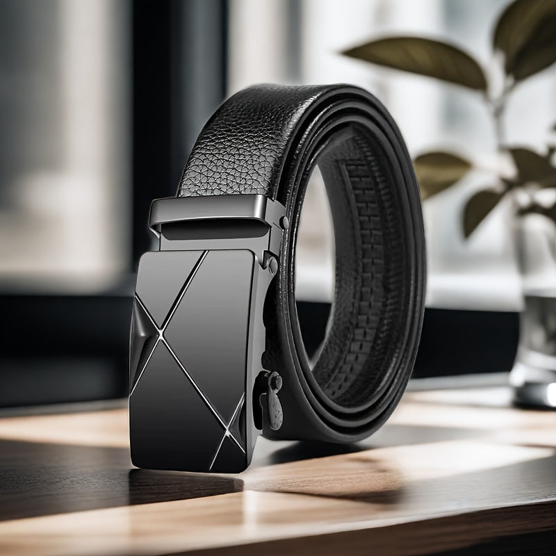 This men's belt features an automatic buckle design that is perfect for both casual and business attire. Make a fashion statement with this versatile and stylish belt.