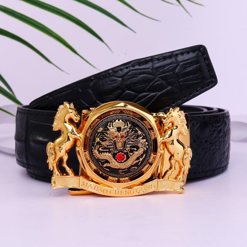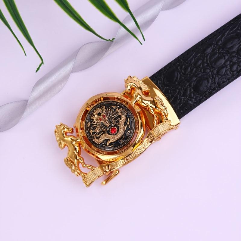 This stylish men's belt features automatic buckle and high-quality PU leather material for a sleek and modern look.