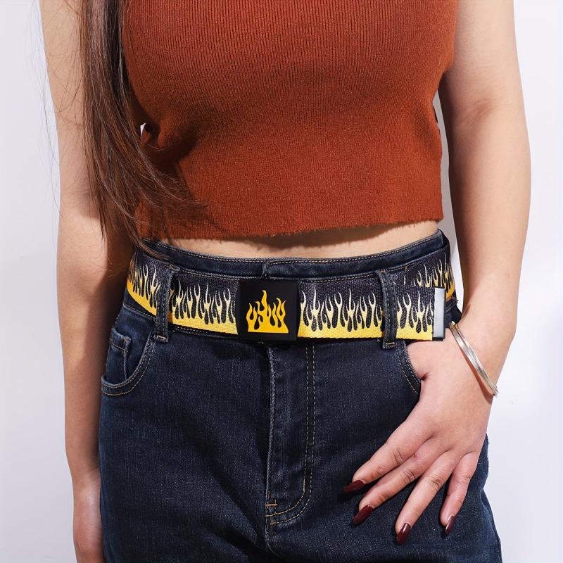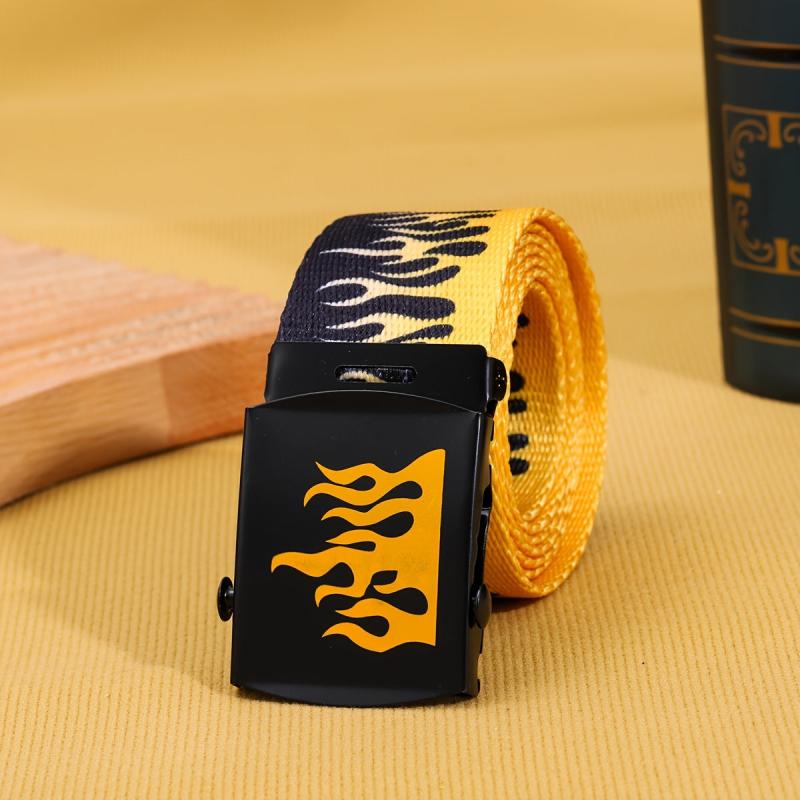 Stay stylish with this canvas belt featuring a flame buckle. It's a sporty casual accessory ideal for various occasions.