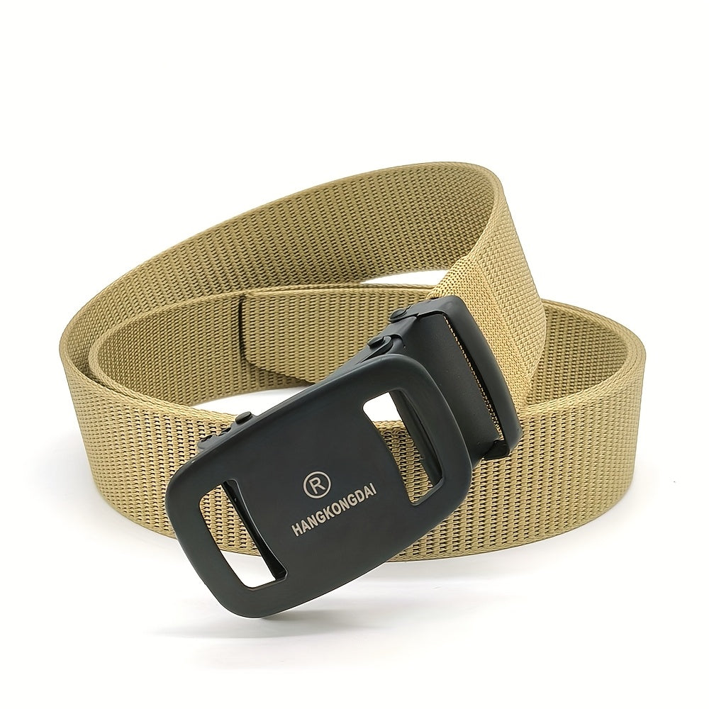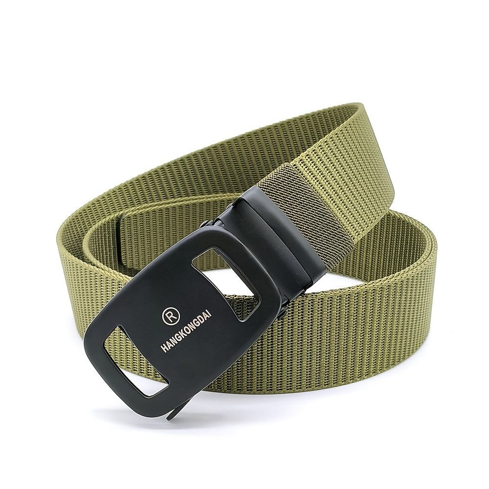 This men's casual belt is made of durable nylon material with an automatic buckle for easy adjustment. Perfect for outdoor work or pairing with casual shorts and jeans.