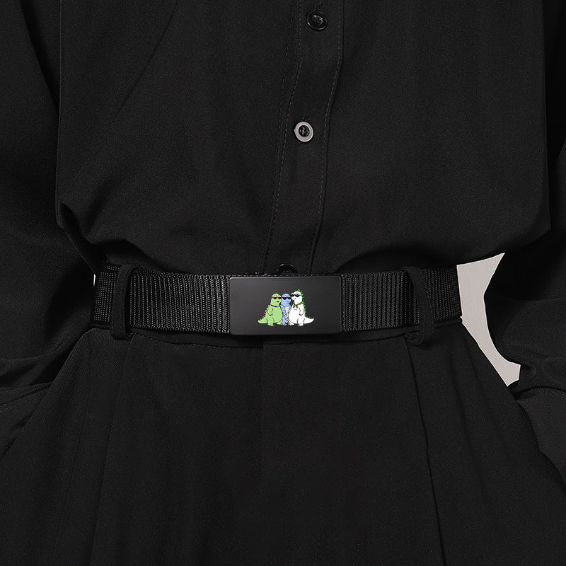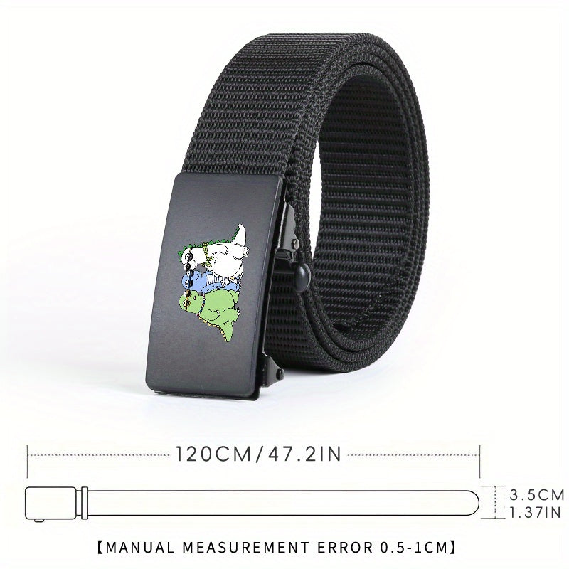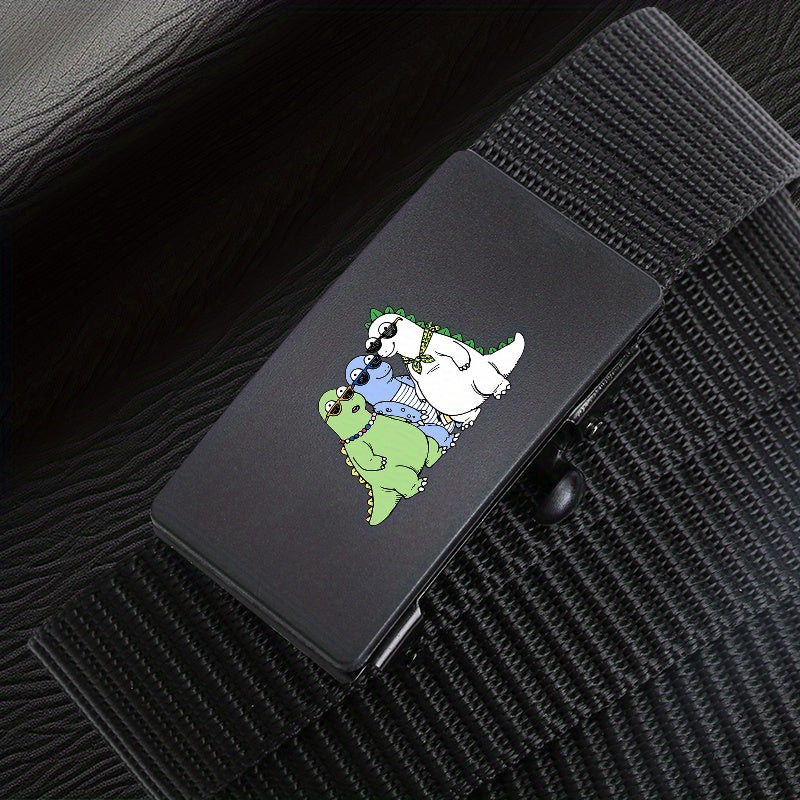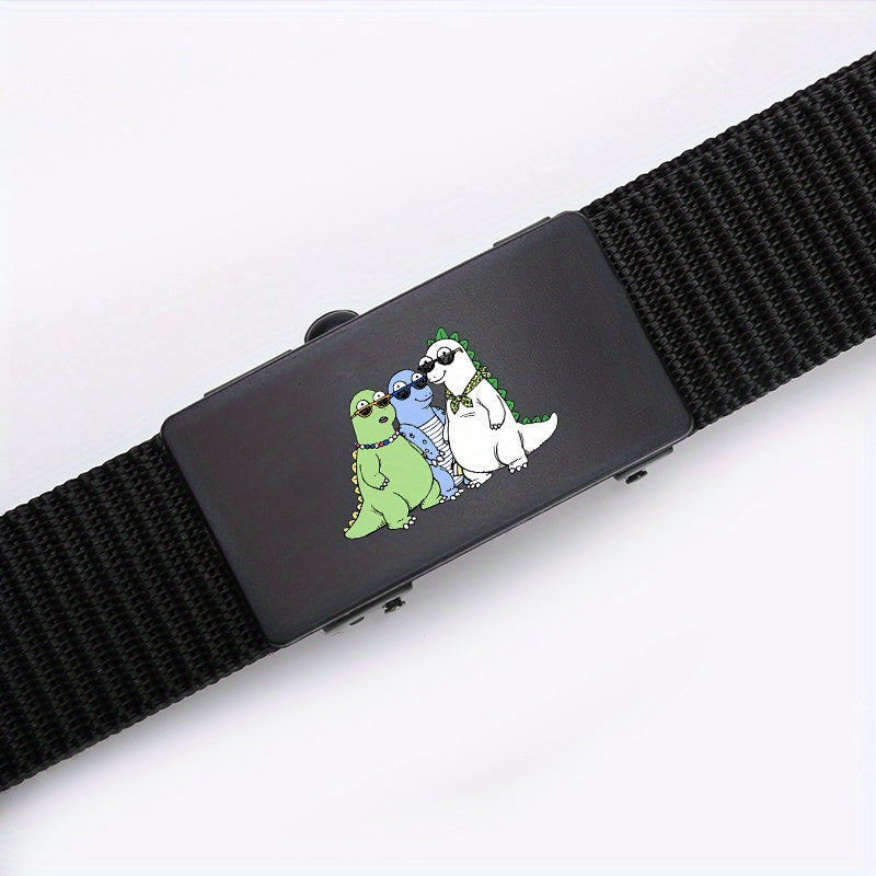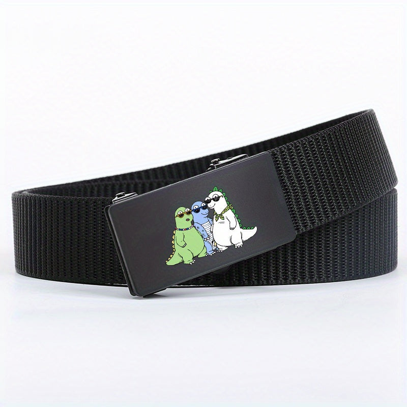 Step up your style game with this woven belt featuring a fun green and cartoon dinosaur design. Perfect for both casual and business wear.
