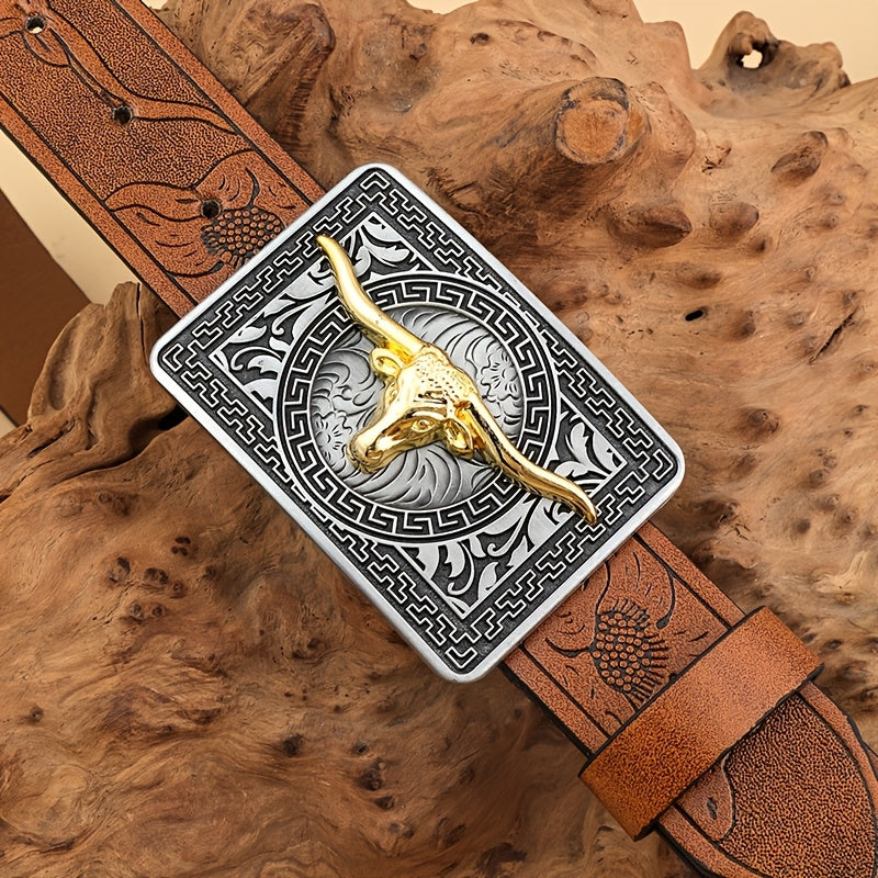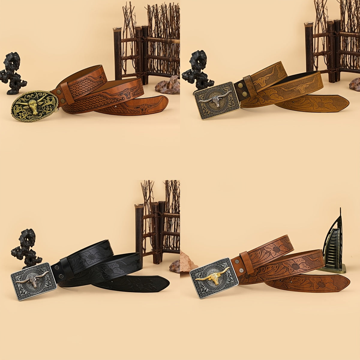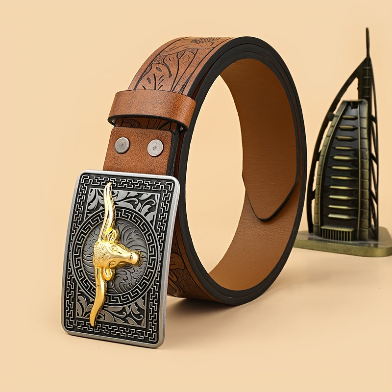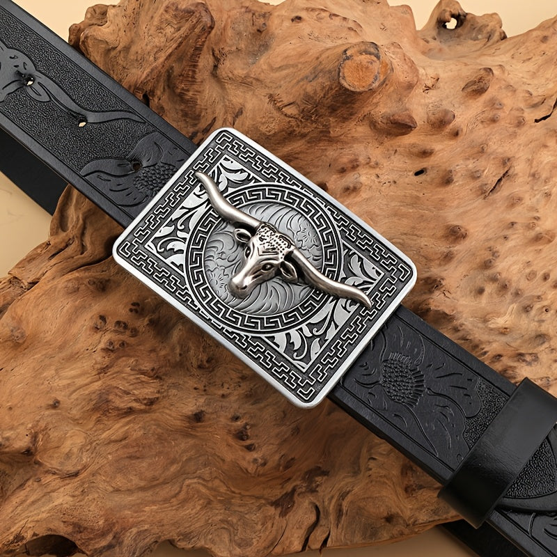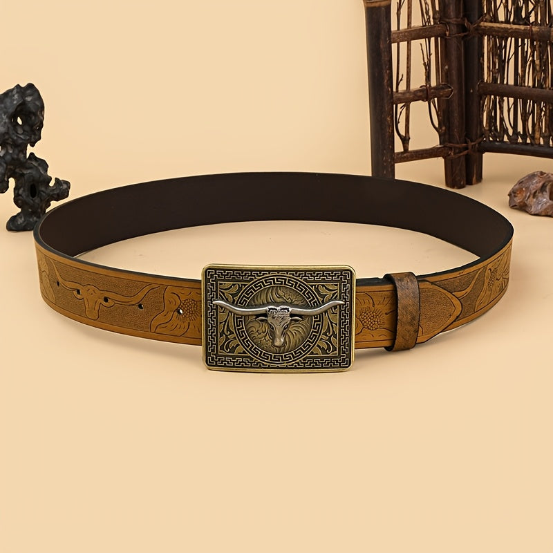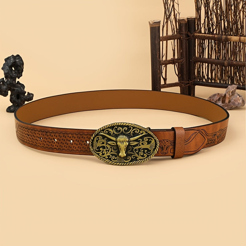 Enhance your casual looks with this versatile belt featuring intricate embossed design. Made of faux leather, hand washable, and fits an average size. Perfect for a cowboy vibe.