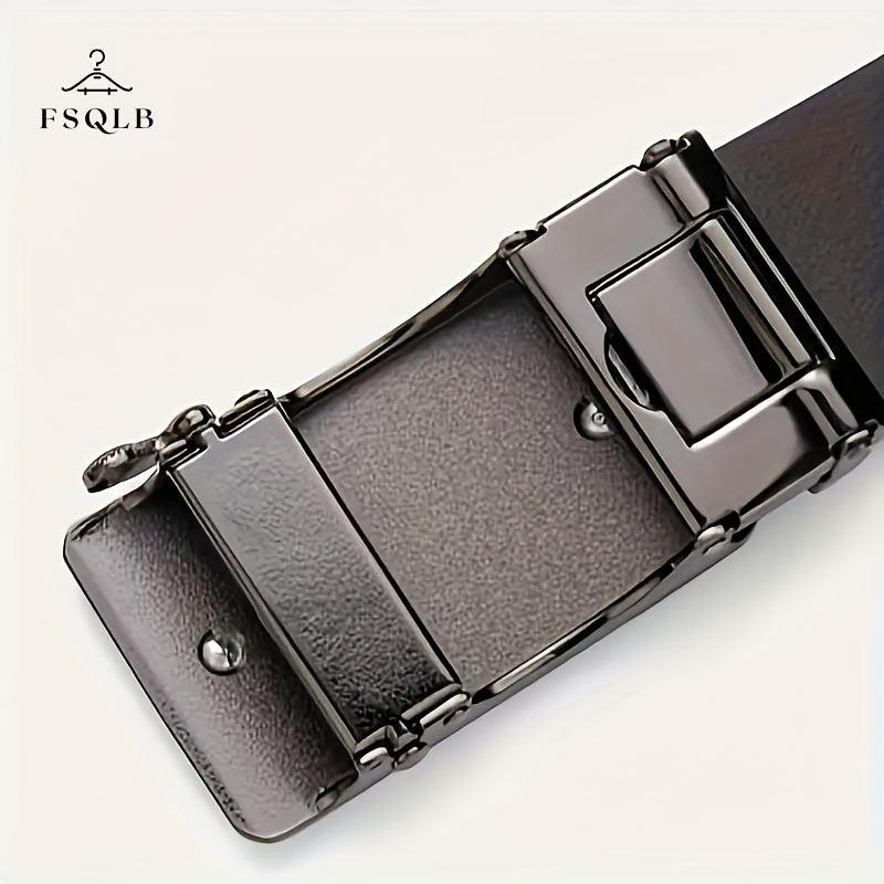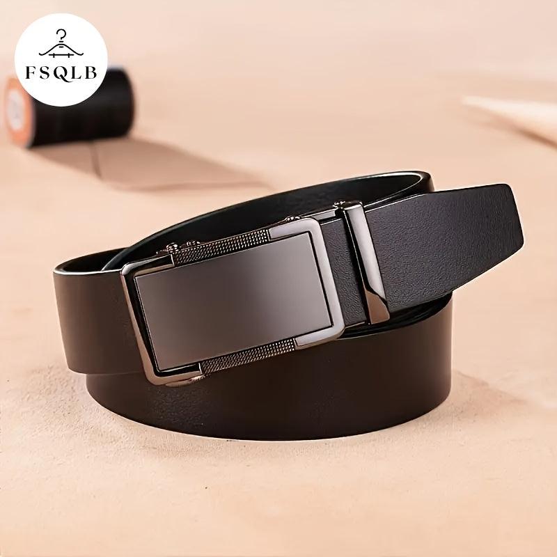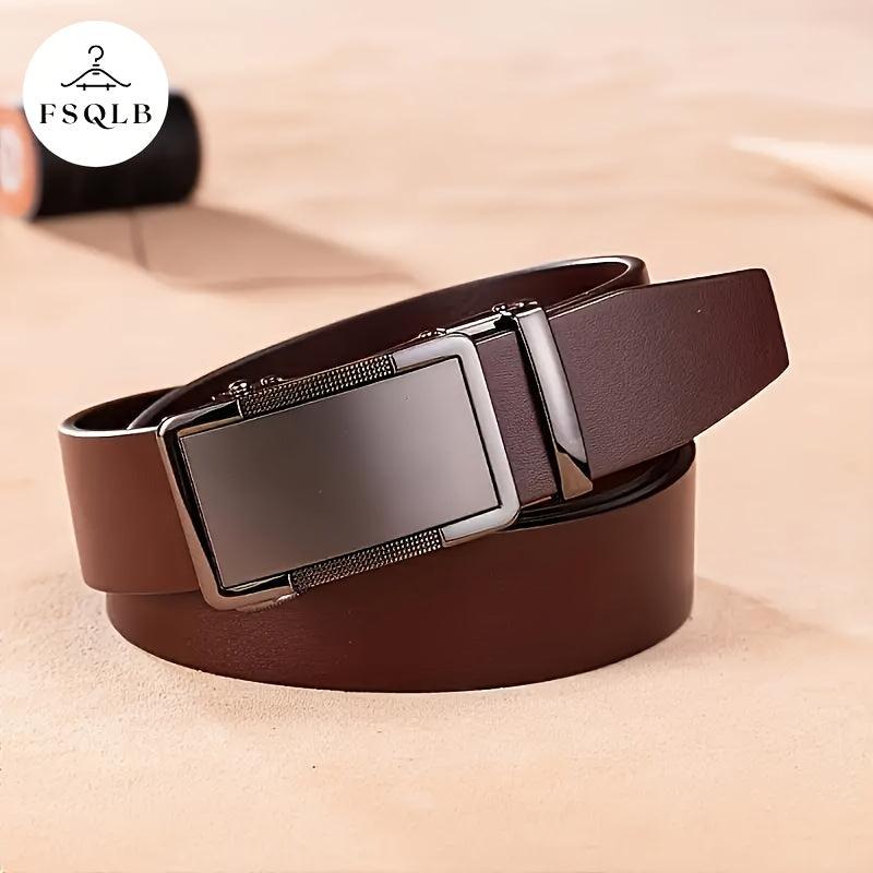 This stylish faux leather belt features a toothless automatic buckle, making it perfect for both casual and business wear. It is suitable for middle-aged and young gentlemen.