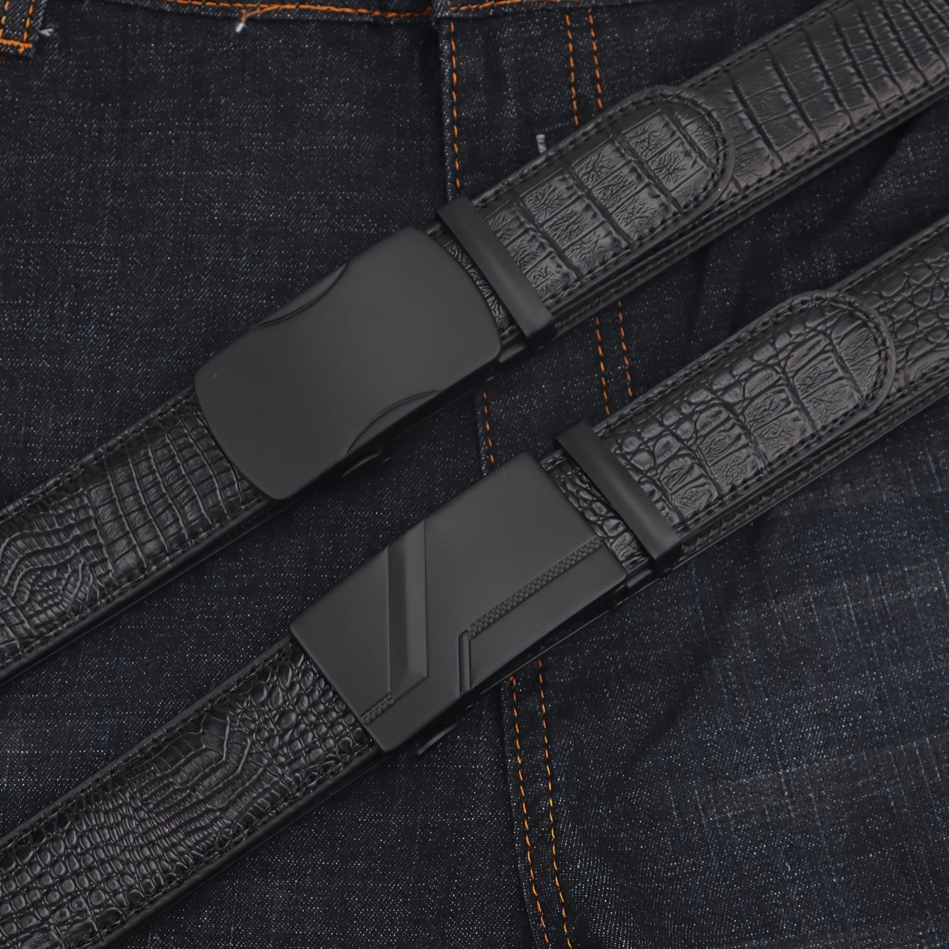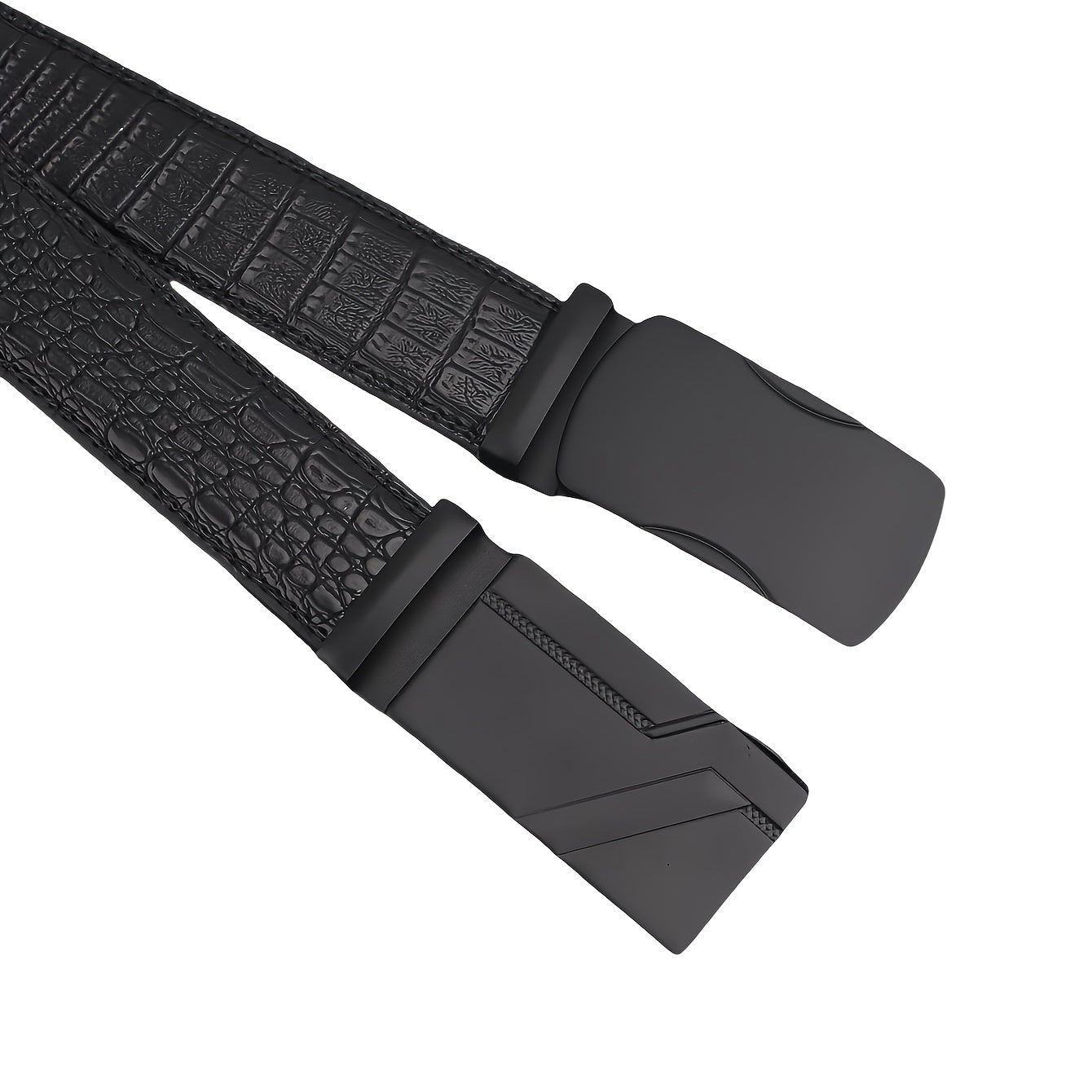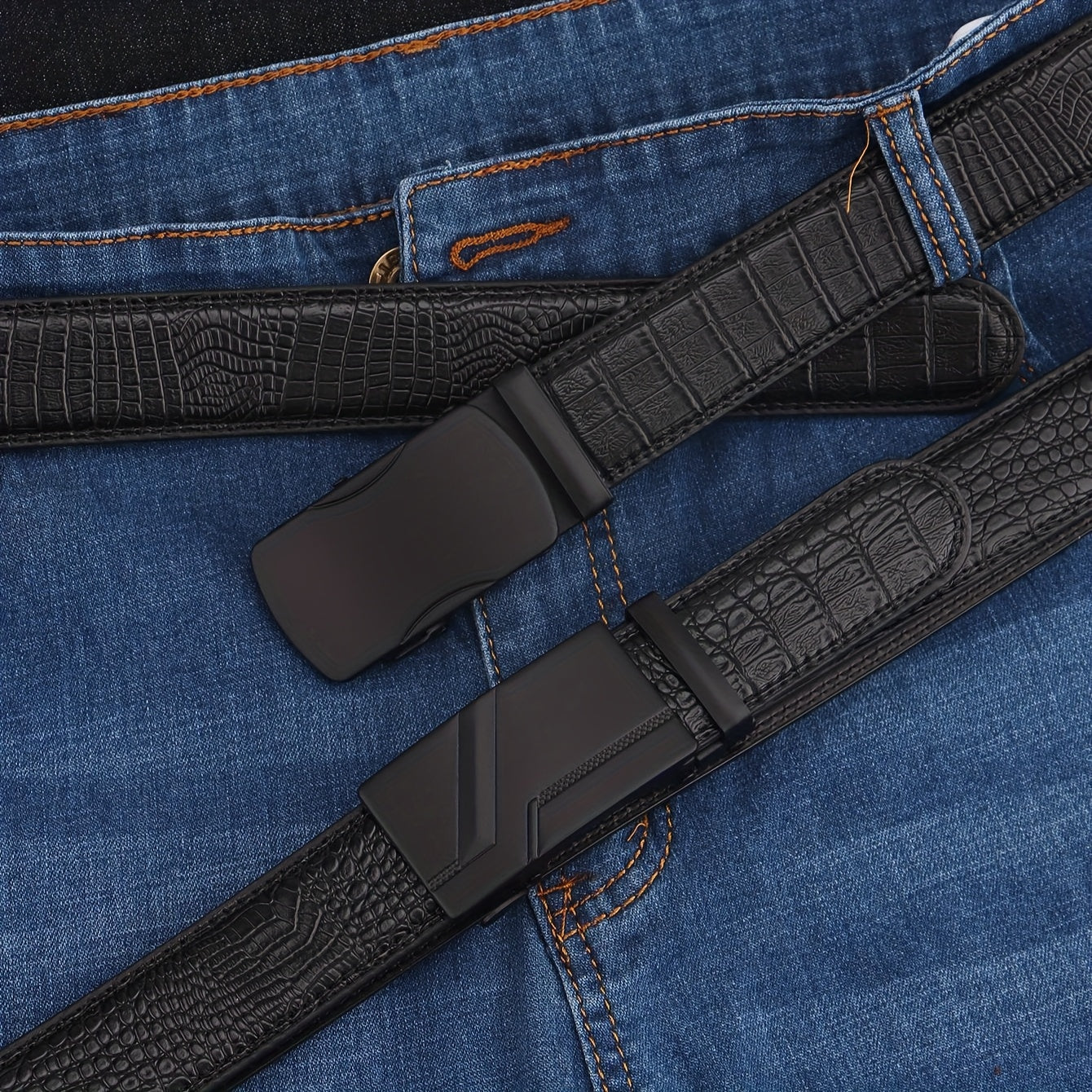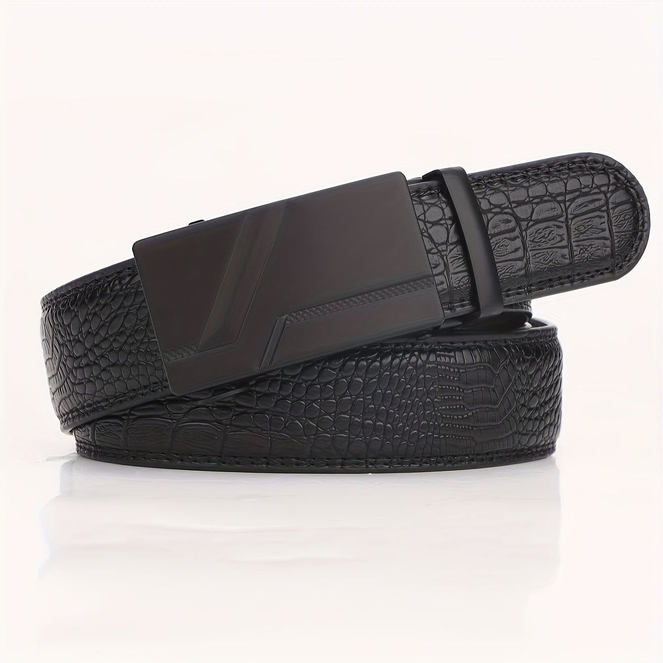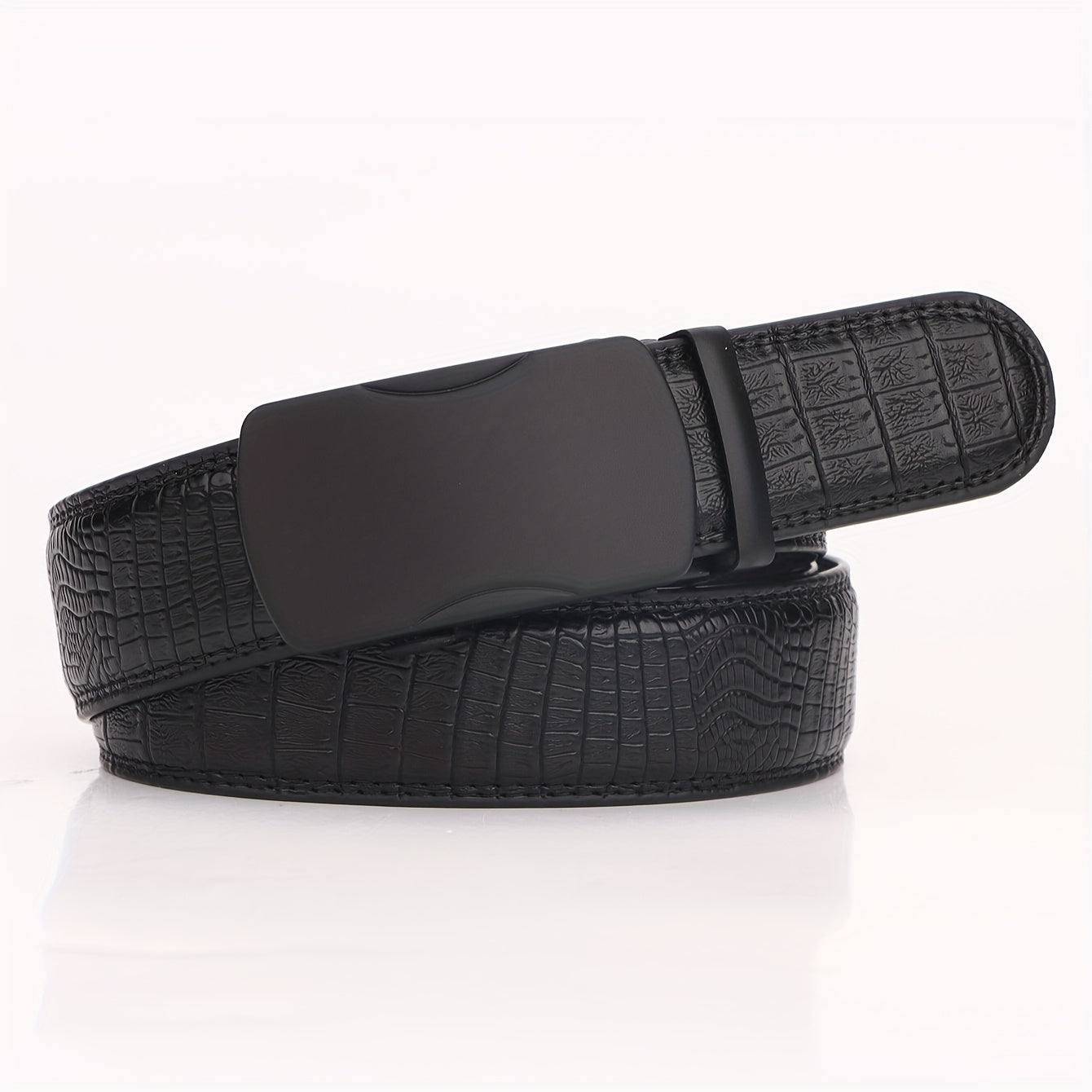 Dress up your business style with this high-quality faux leather belt featuring a crocodile automatic iron buckle.
